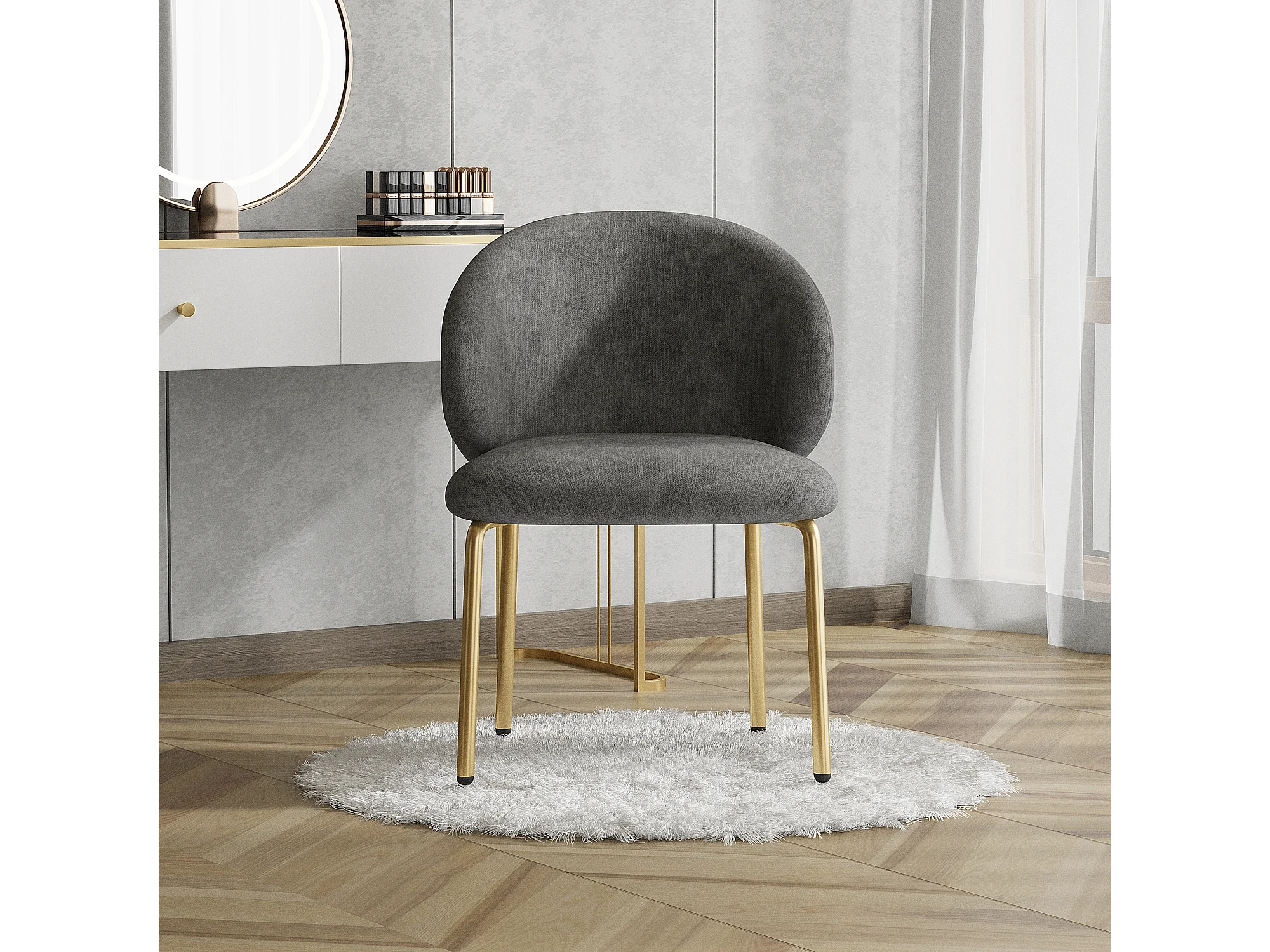 1 Chaise en tissu chenille - pieds en métal doré - chaise de coiffeuse - chaise de salle à manger - Gris