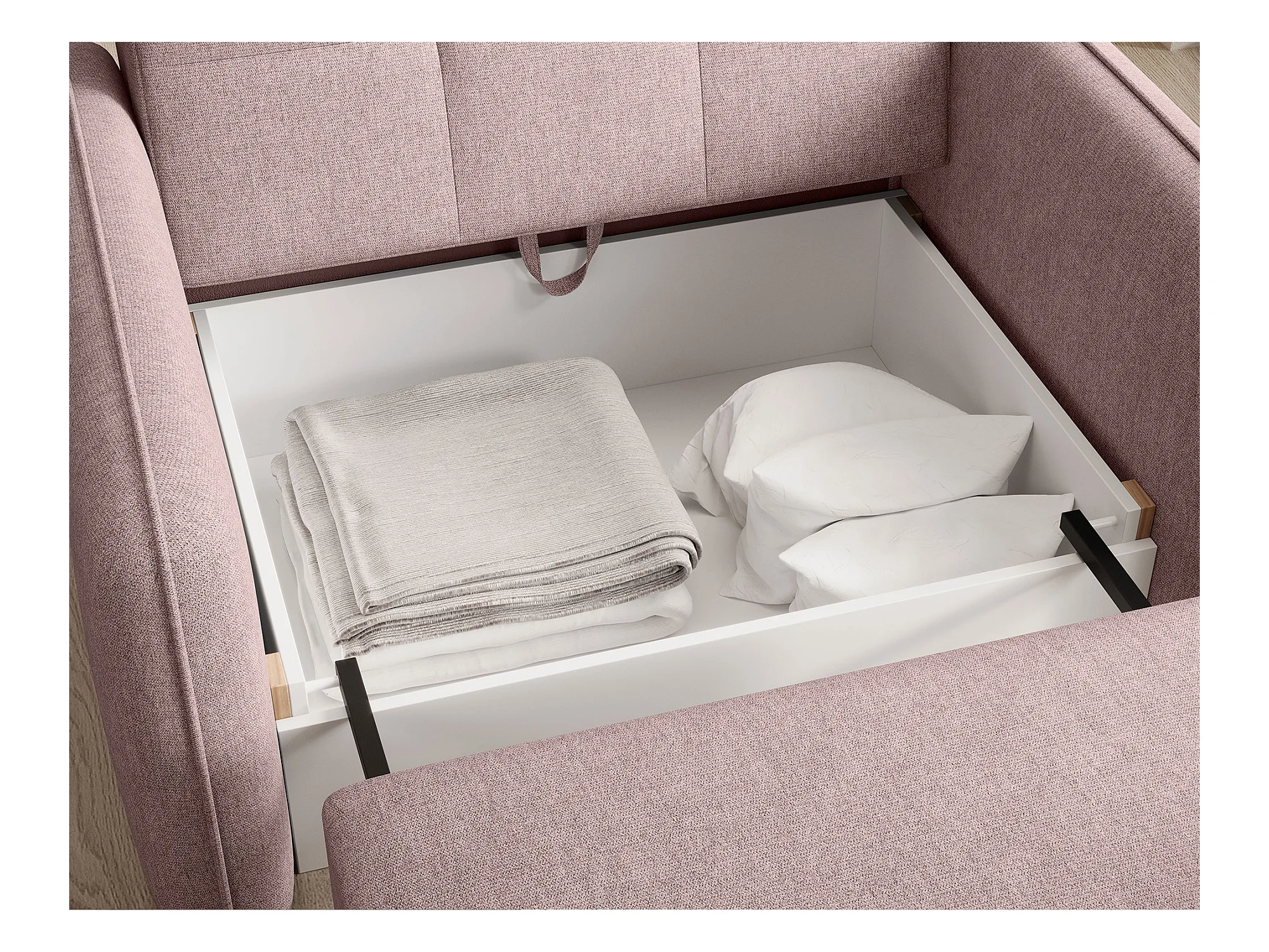 Canapé-lit, canapé avec fonction couchage et coffre de lit, DUO, tissu Velo, rose