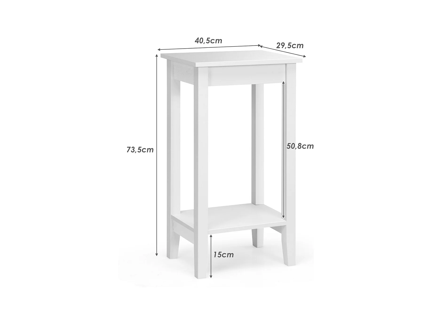 2 er Set Beistelltisch mit Regal 2-stöckiger hoher Sofatisch mit 4 Massivholzbeinen Weiß