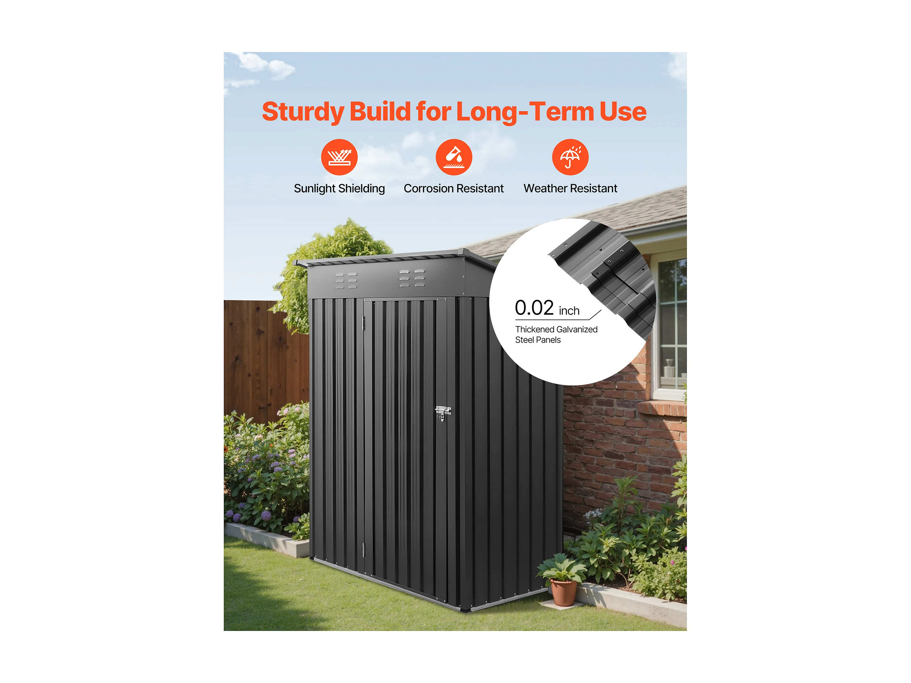 Abri de Jardin SucceBuy en Métal, 153,3 x 87,6 cm, Abri de Rangement d’Extérieur, avec Porte Verrouillable, Toit en Pente, Cabine de Jardin, Gris