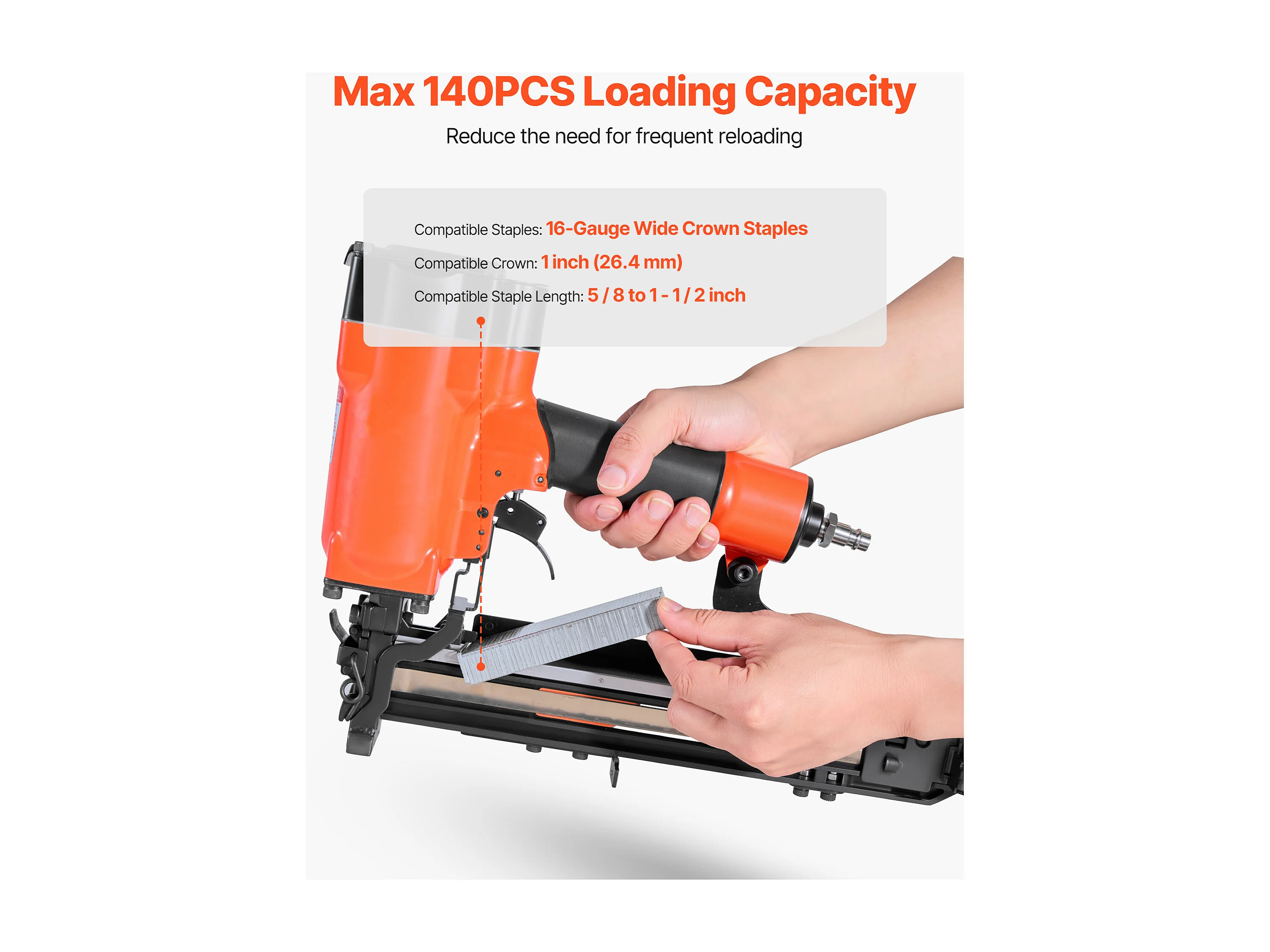 Agrafeuse Pneumatique SucceBuy, Calibre 16, Compatible avec Agrafes Non Inclues Couronne Large 2.64 cm de Longueur 1.6-3.8 cm, 4,8-8,3 bar, 2 Modes