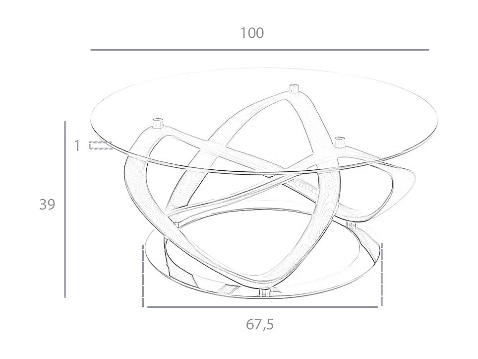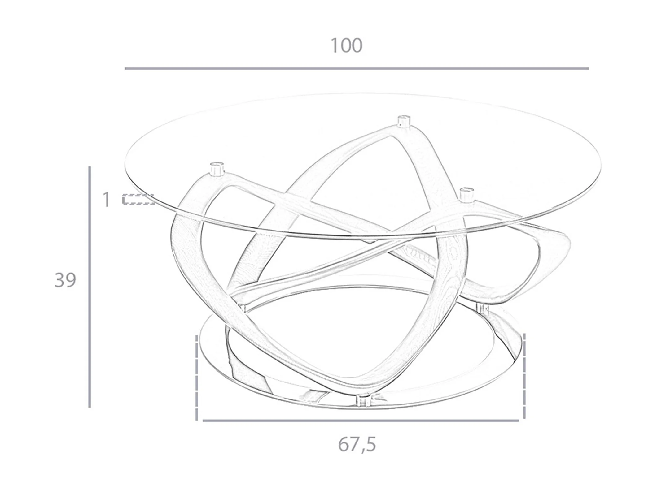 Table basse ronde en verre trempé, noyer et acier chromé 2064 ANGEL CERDA