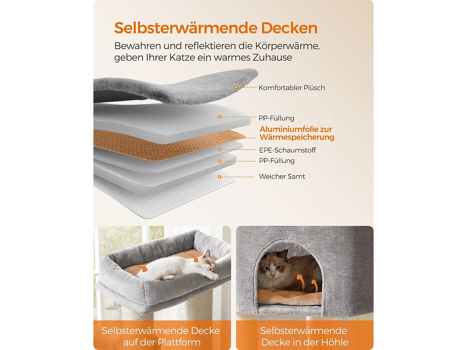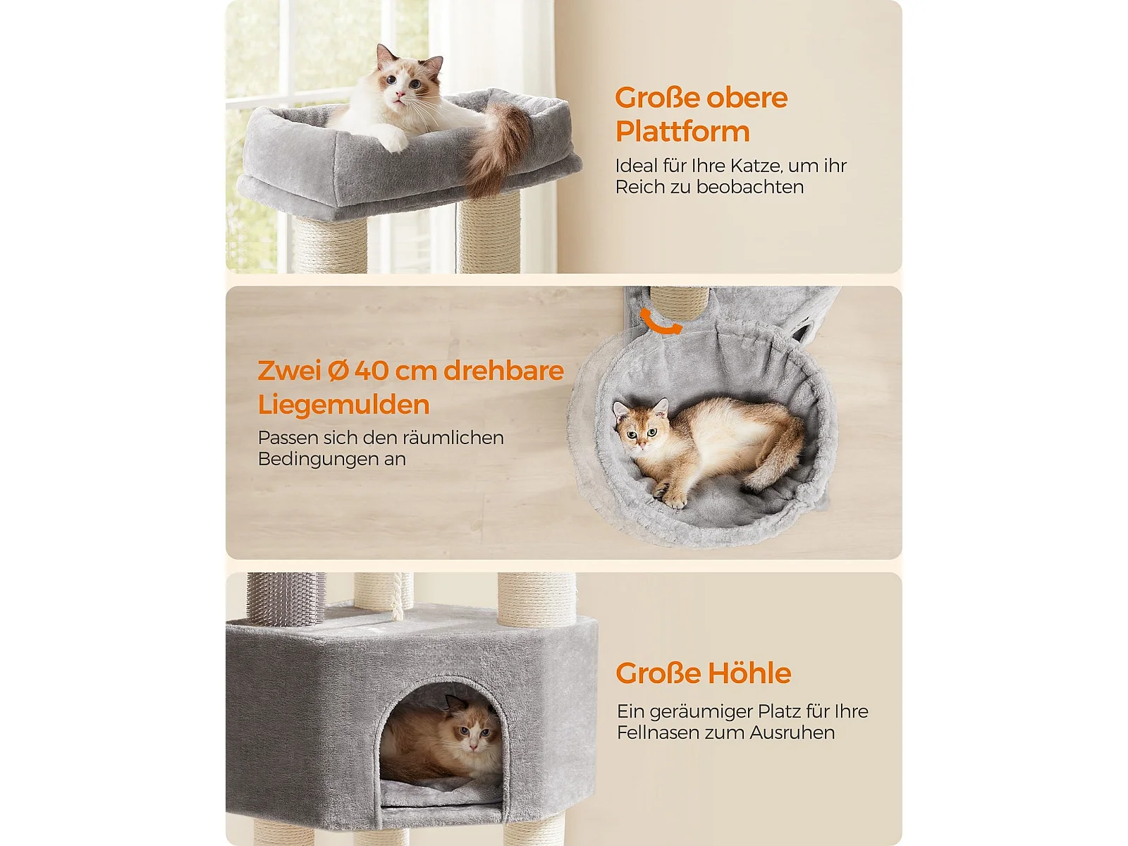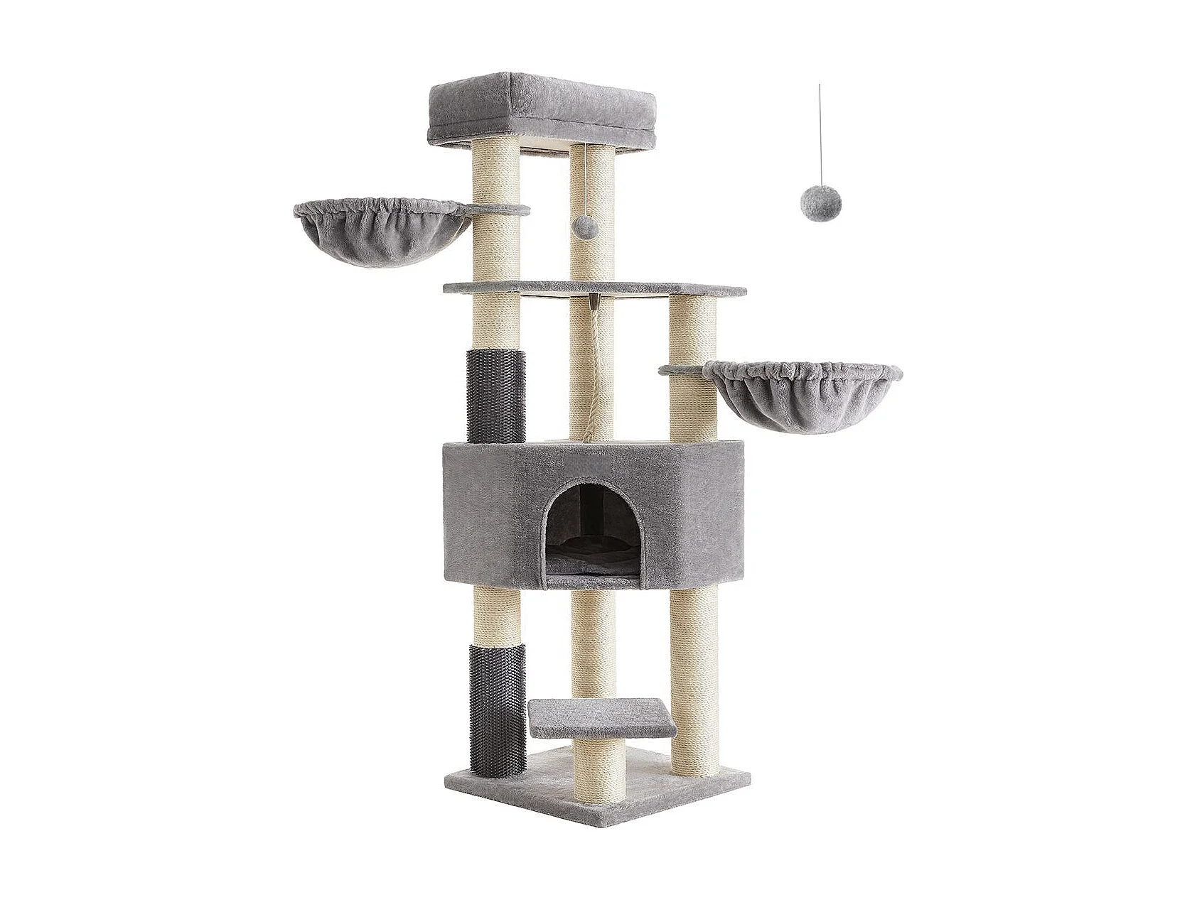 178 cm Katzenbaum mit Sisal-Kratzsäulen & 3 Warmen Liegeflächen & Plüschbälle Grau