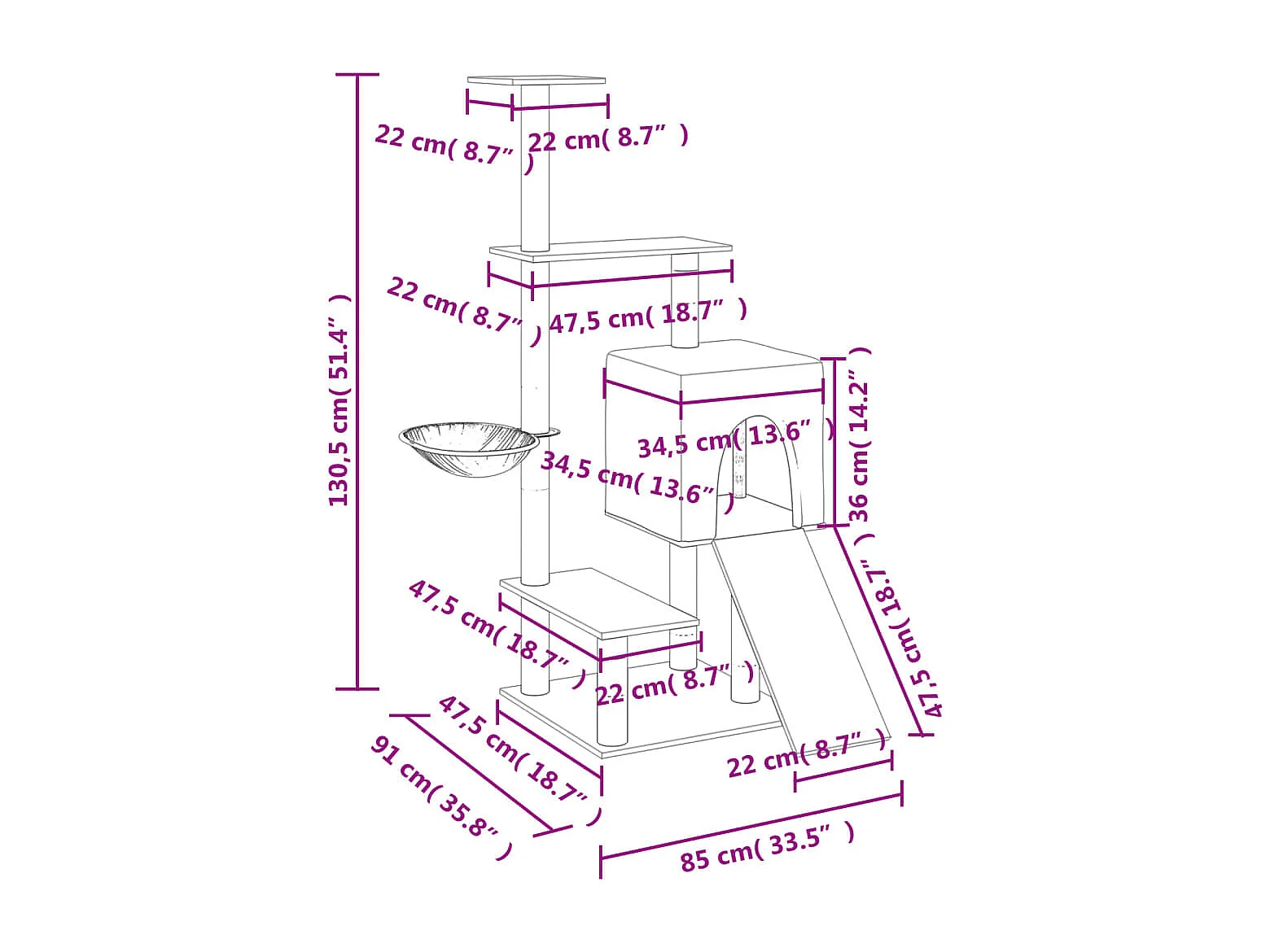 Arbre à chat avec griffoirs en sisal gris foncé 130,5 cm