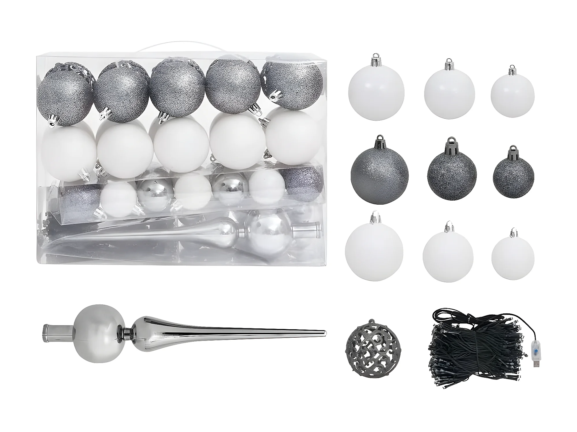 Arbre de No?l artificiel pré-éclairé et boules noir 120 cm PVC