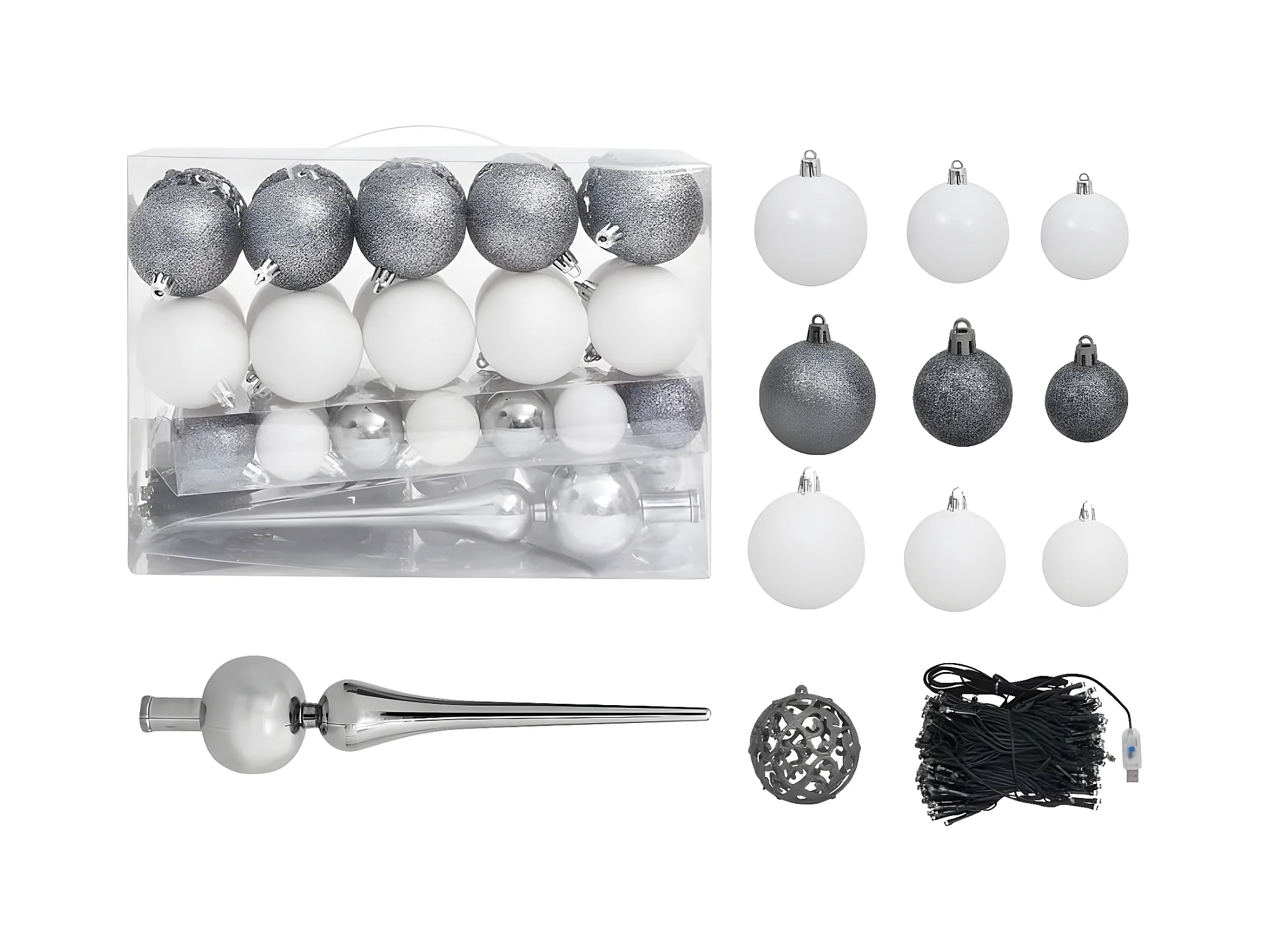 Arbre de No?l givré pré-éclairé et boules pommes de pin 150 cm