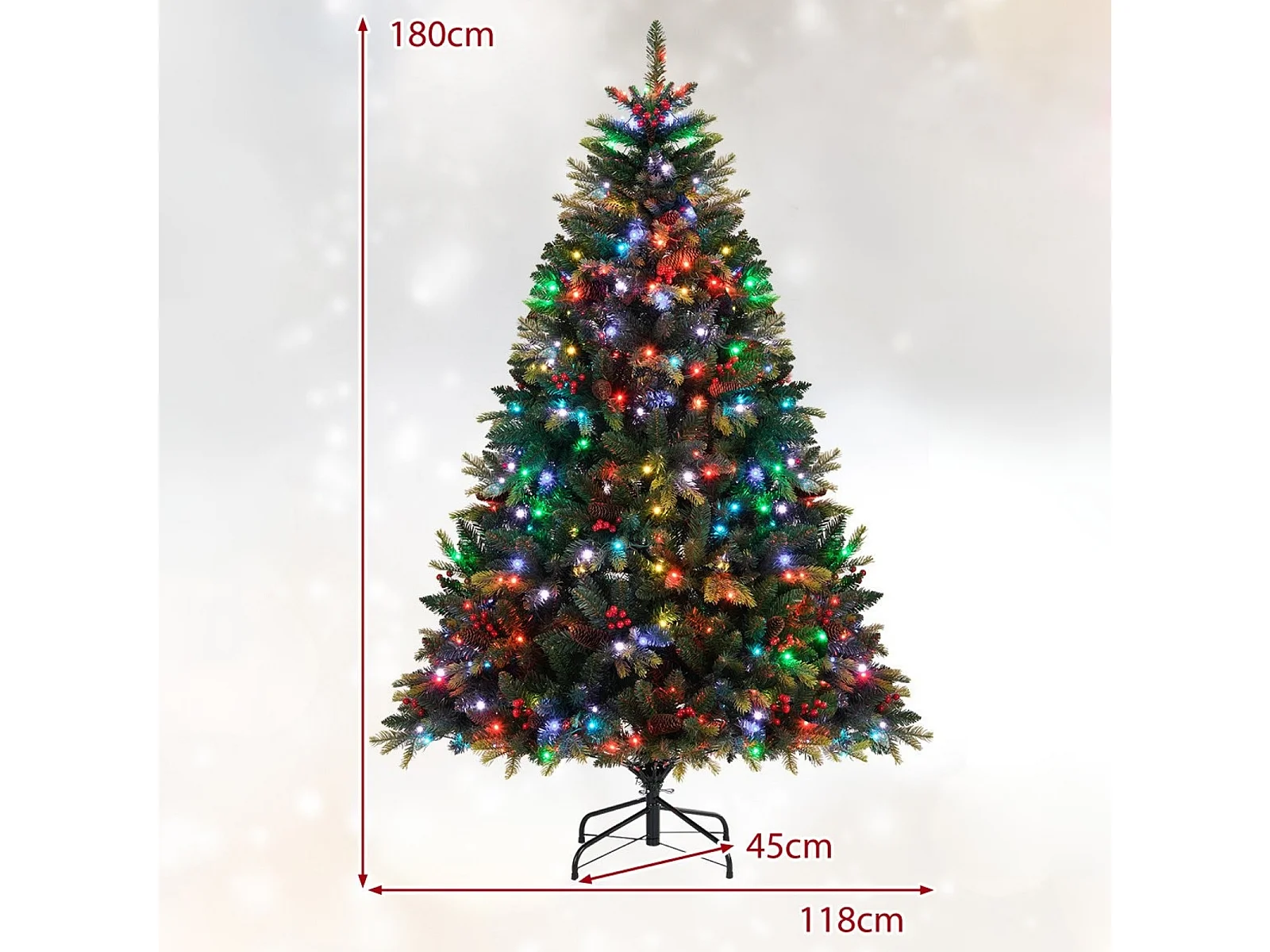 Arbre de Noël Artificiel Pré-éclairé avec Télécommande Lumières RGB Multicolores Branches en PE&PVC Modes Scintillants Branches à Charnières