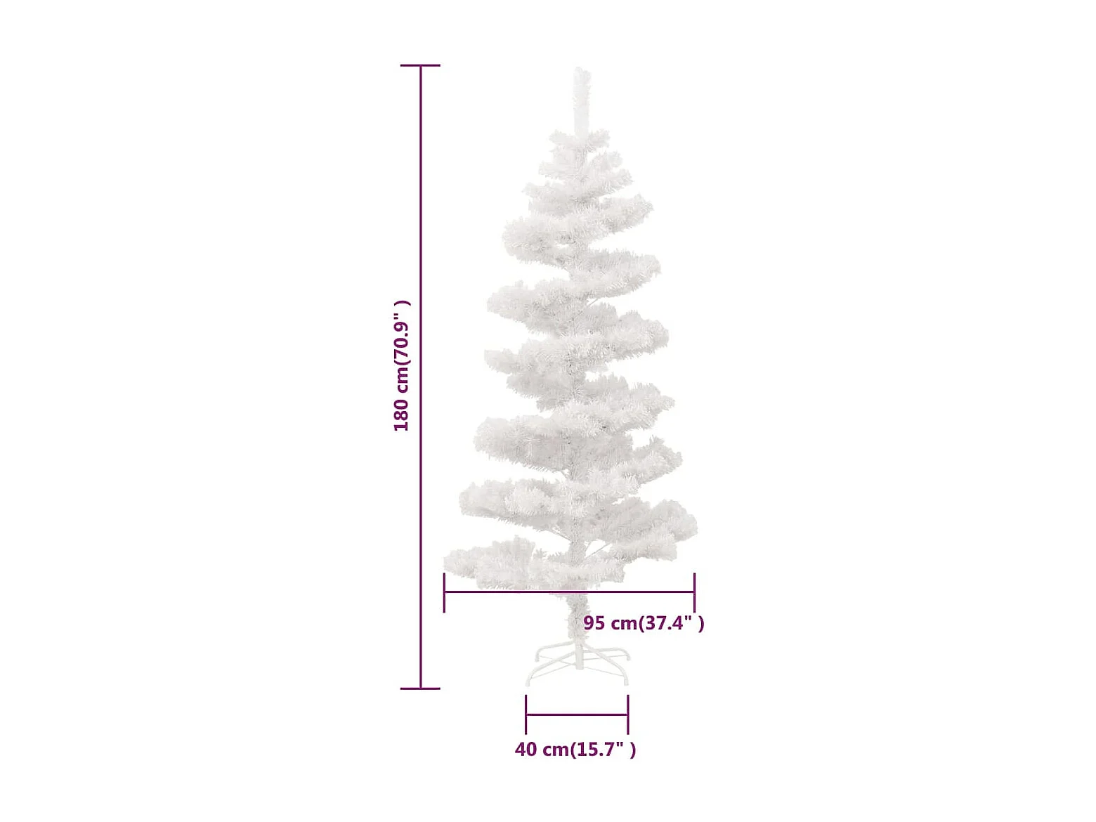 Arbre de Noël hélicoïdal pré-éclairé et support blanc 180cm PVC