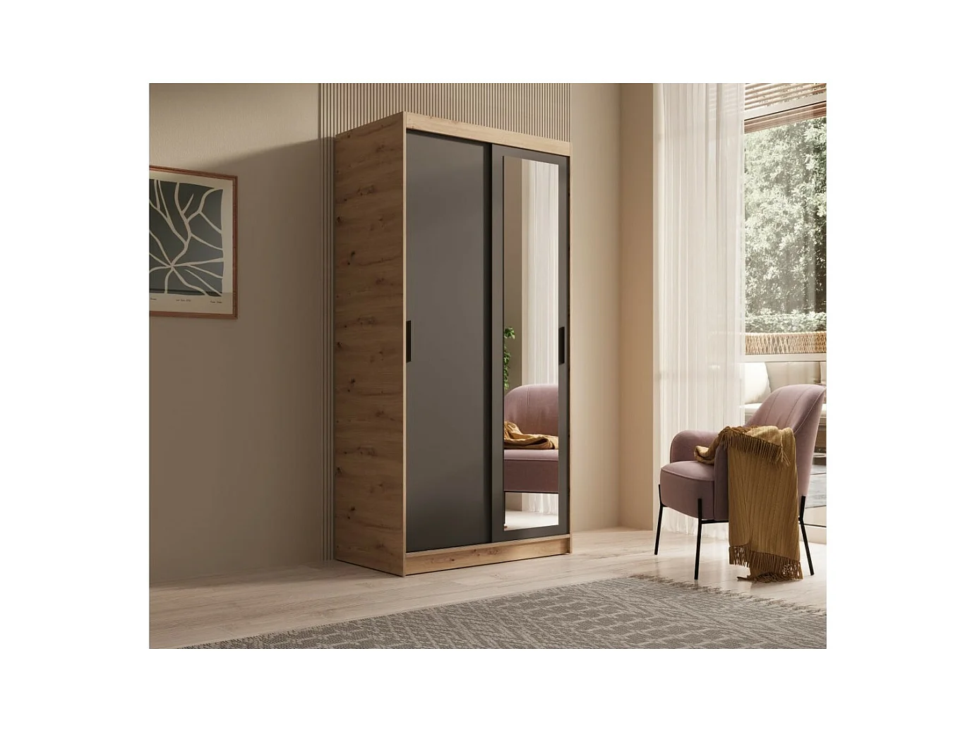 Armoire Daros (100cm)/portes coulissantes/miroir/Noir