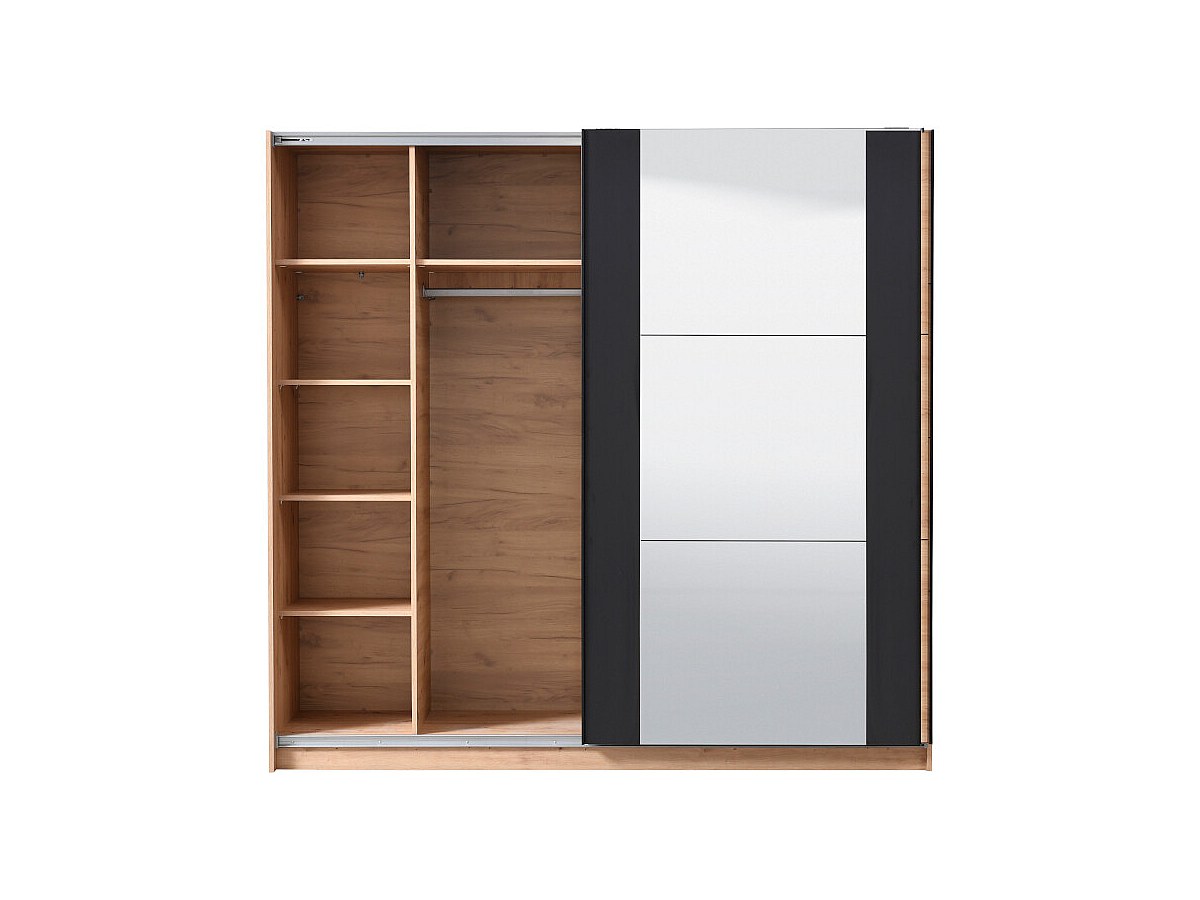 Armoire 2 portes coulissantes PHILADELPHIE - Avec Miroir - L.217cm - Coloris : chêne et noir