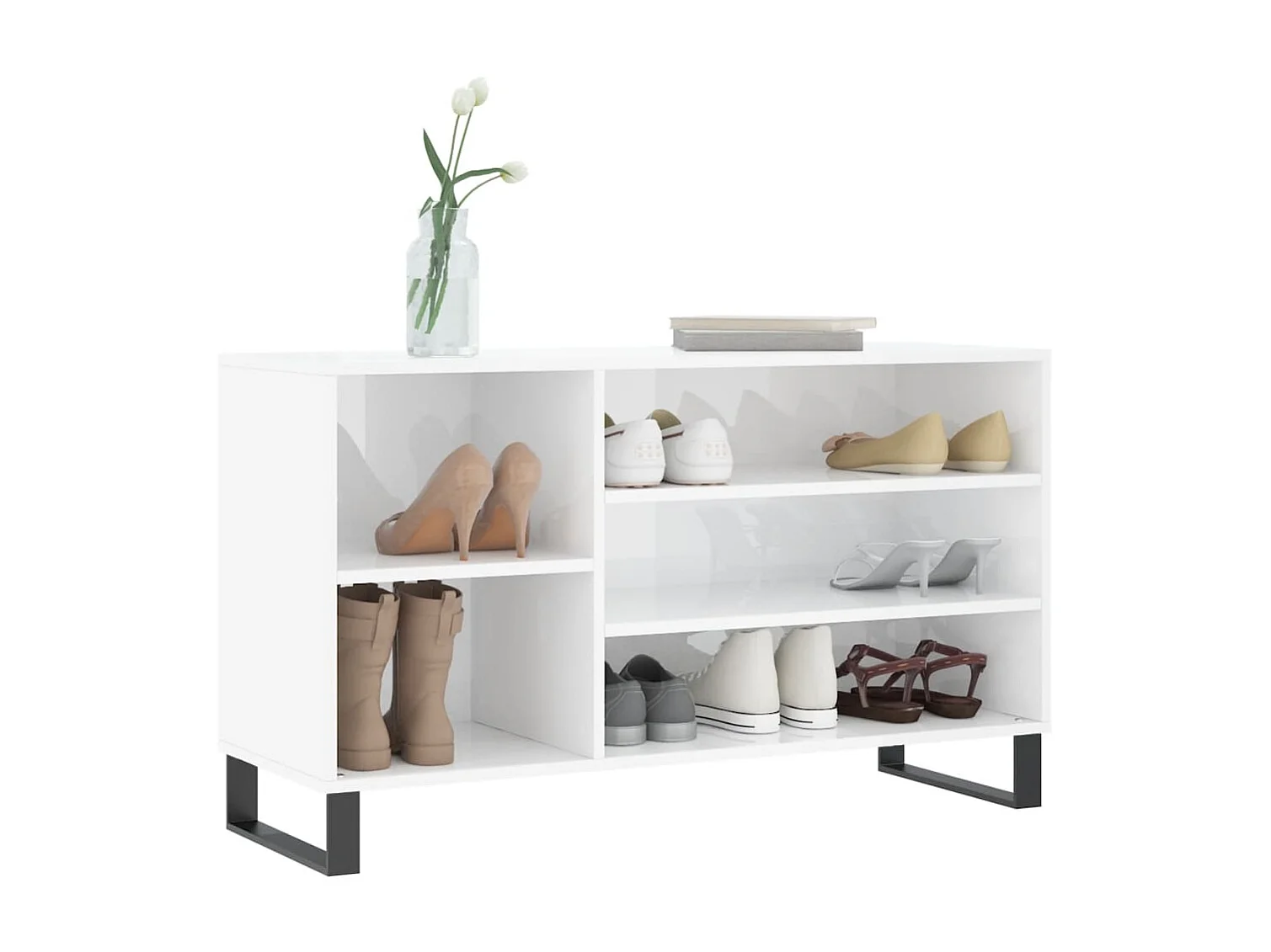Armoire à chaussure Blanc brillant 102x36x60 cm Bois ingénierie