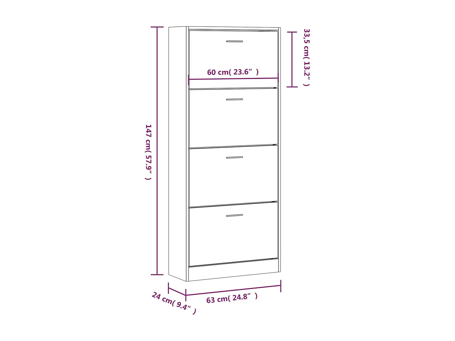 Armoire à chaussures Blanc 63x24x147 cm Bois d'ingénierie