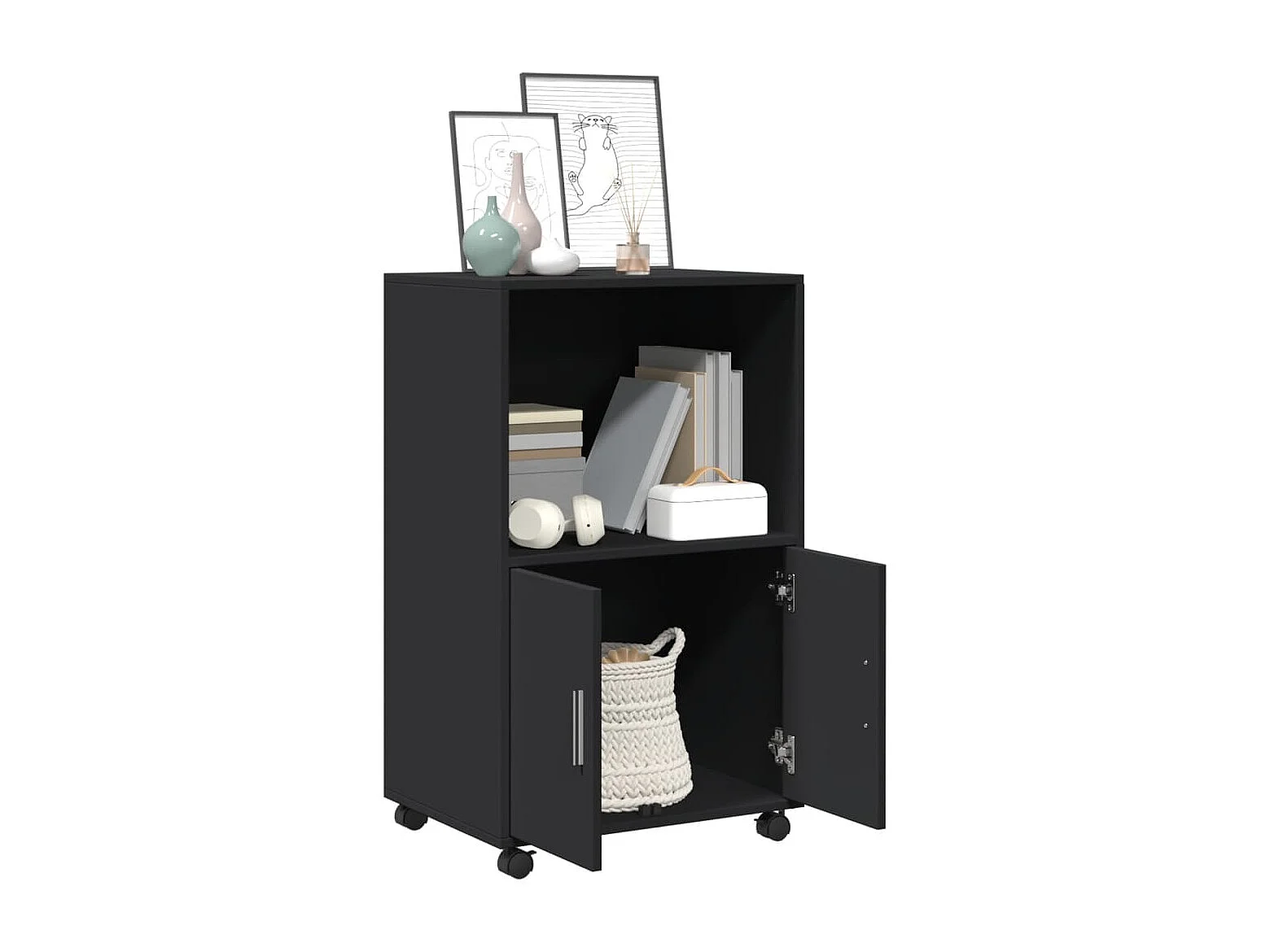 Armoire à roulettes noir 55x40x91 cm bois d'ingénierie