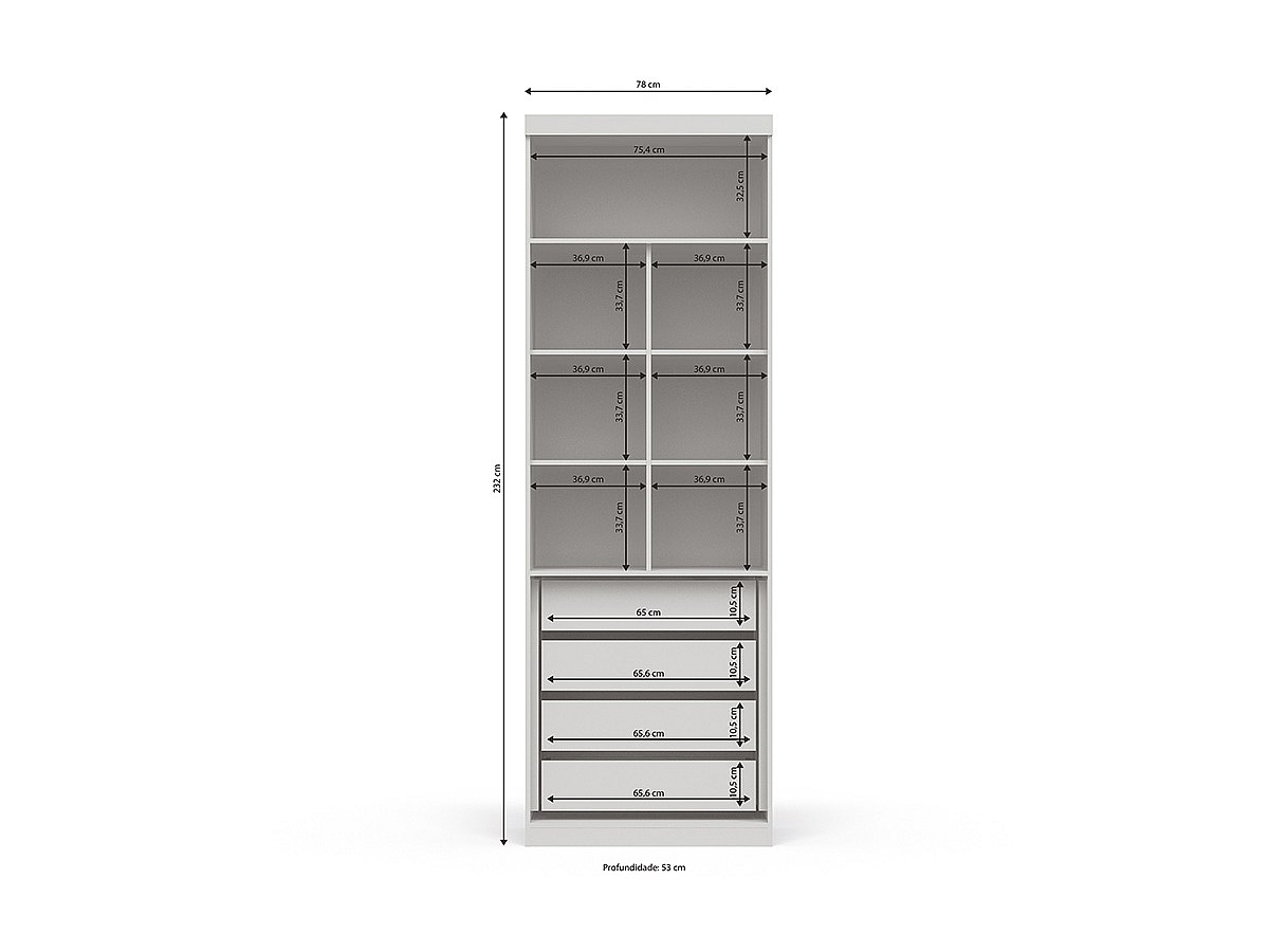 - Dimensions des 6 niches inférieures de rangement L36.9 x H33.7