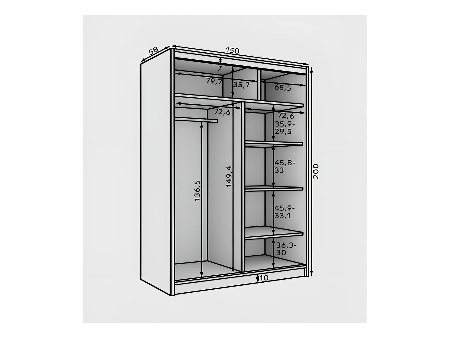 Armoire Alan (150 cm)/Portes coulissantes et miroir/Blanc