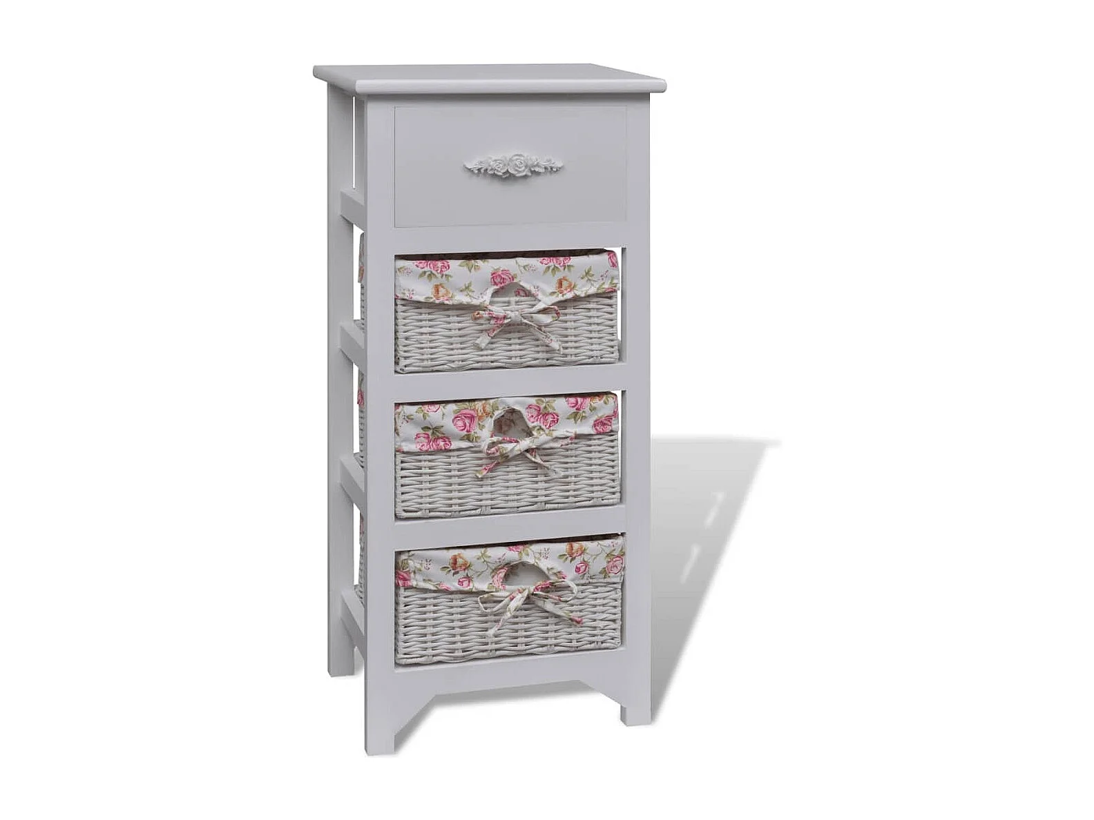 Armoire avec 1 tiroir et 3 paniers Blanc Bois de Paulownia