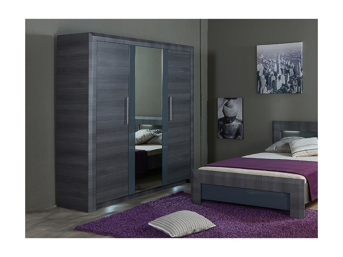 Armoire avec miroir BRITANY - L183 cm - 3 portes - Finition aspect orme gris
