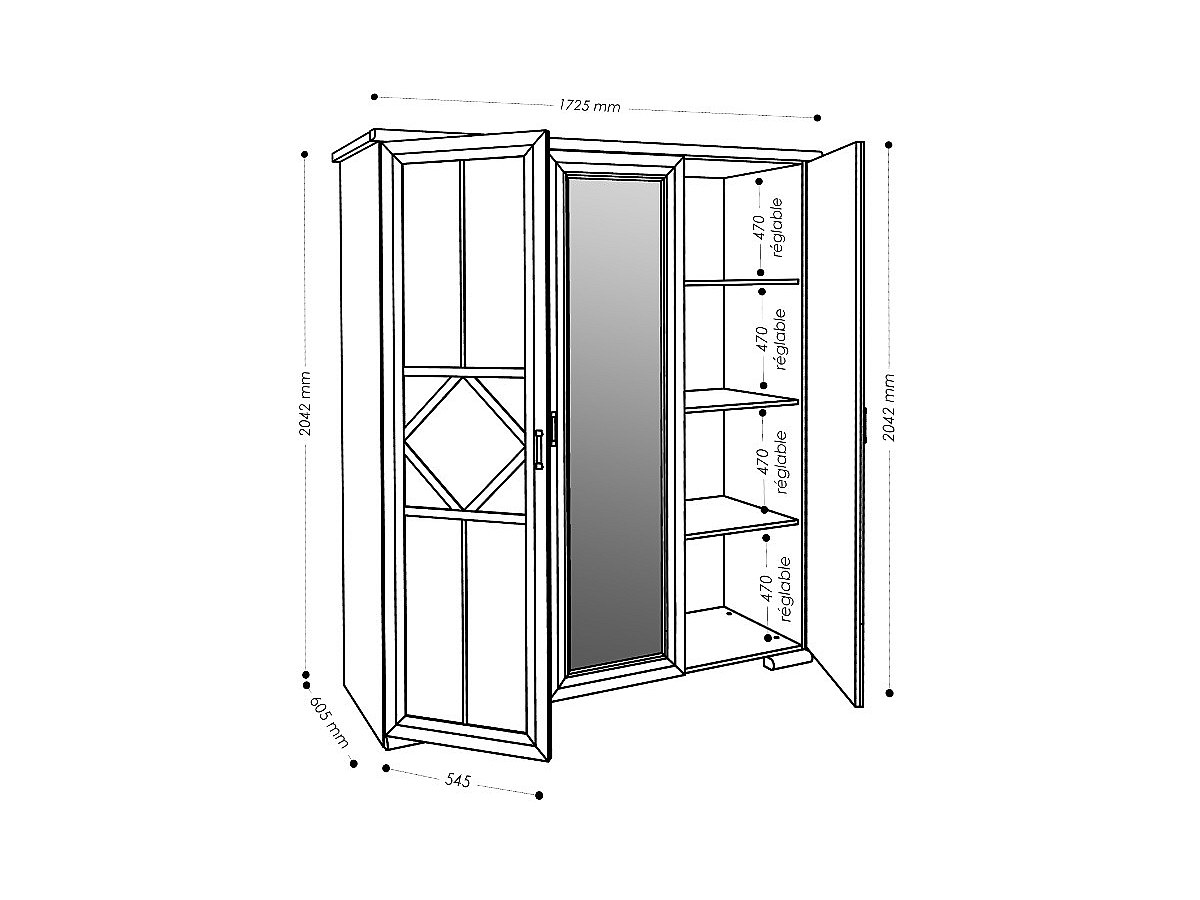 Dimensions: L172.5 x P60.5 x H204.2 cm