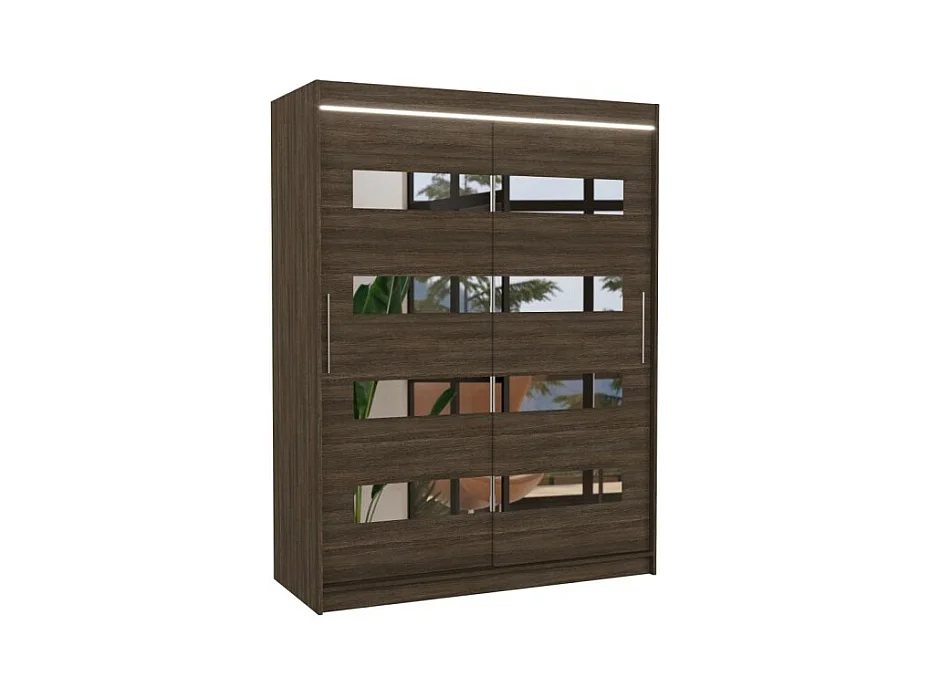 Armoire Zimbo (150cm)/portes coulissantes/miroir/LED/Marron