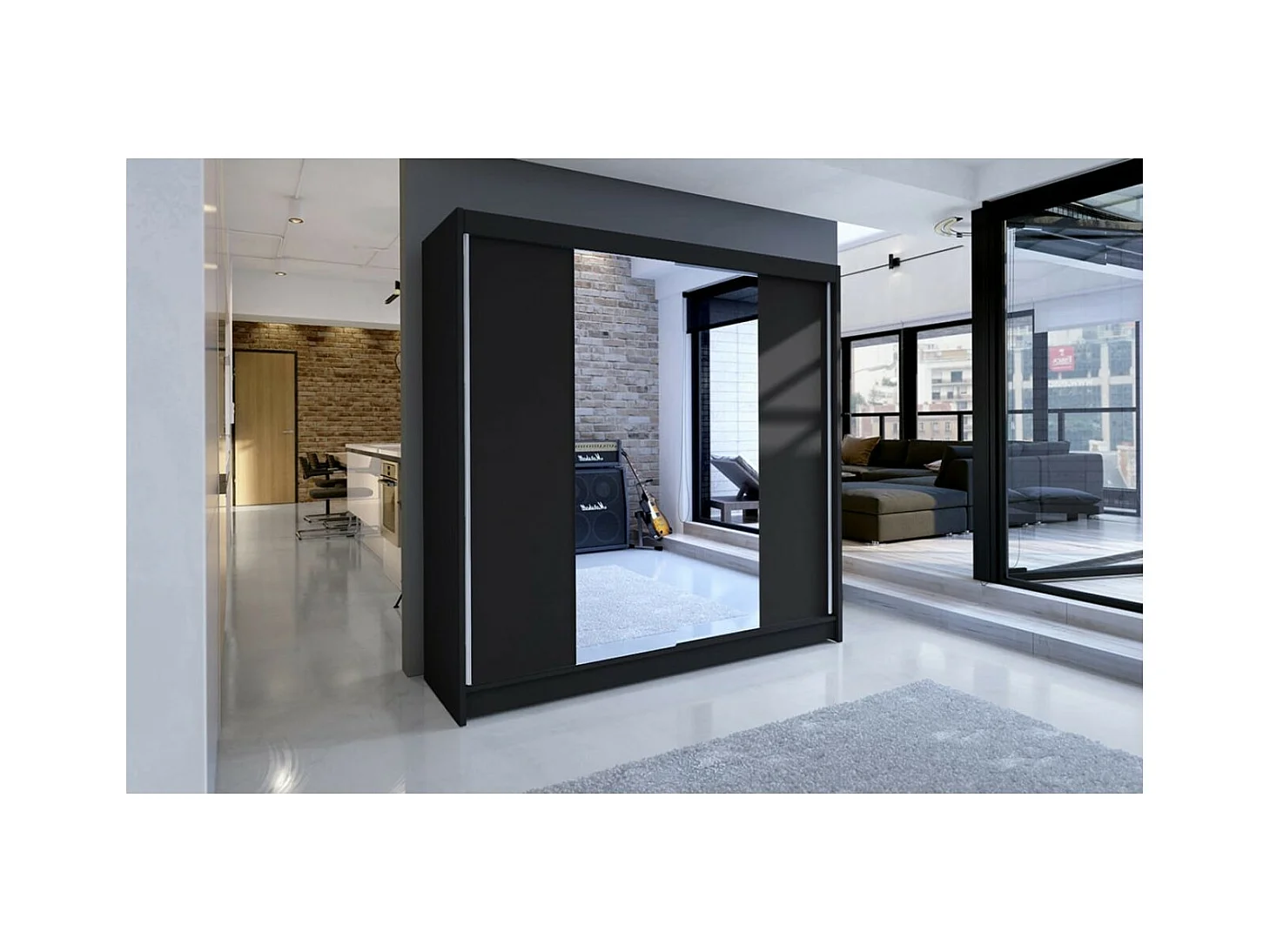 Armoire Tim (180cm)/Miroir/Portes coulissantes/Noir