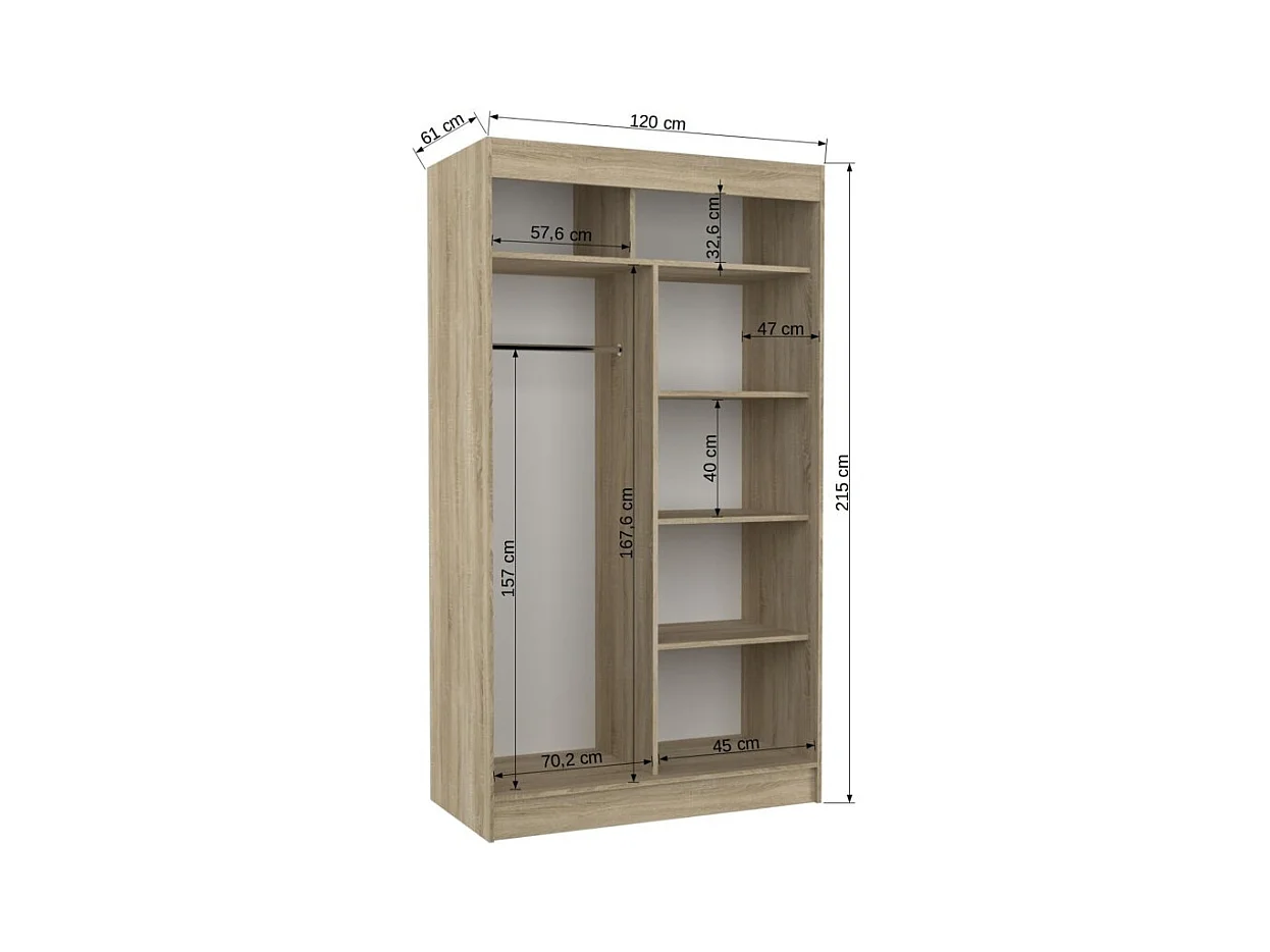 Armoire Dalton (120cm)/Portes coulissantes/Miroir/Marron