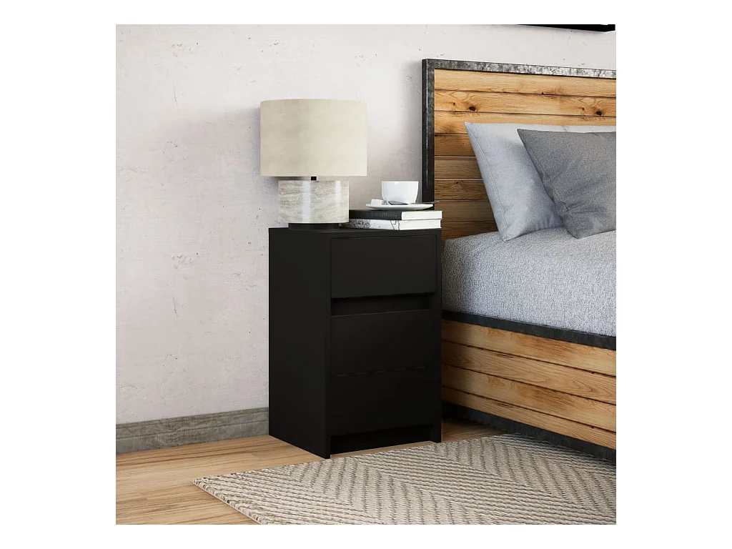 Armoires de chevet et lumières LED 2 pcs noir bois d'ingénierie