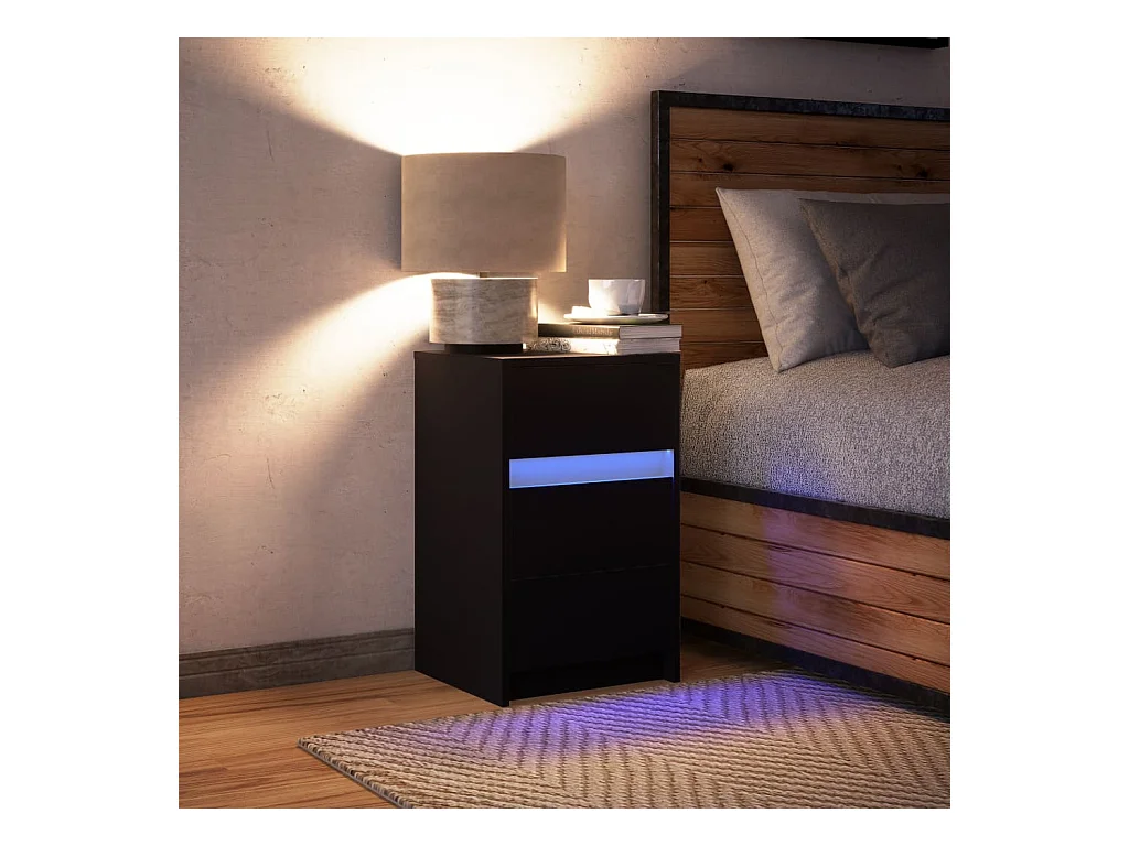 Armoire de chevet avec lumières LED noir bois d'ingénierie