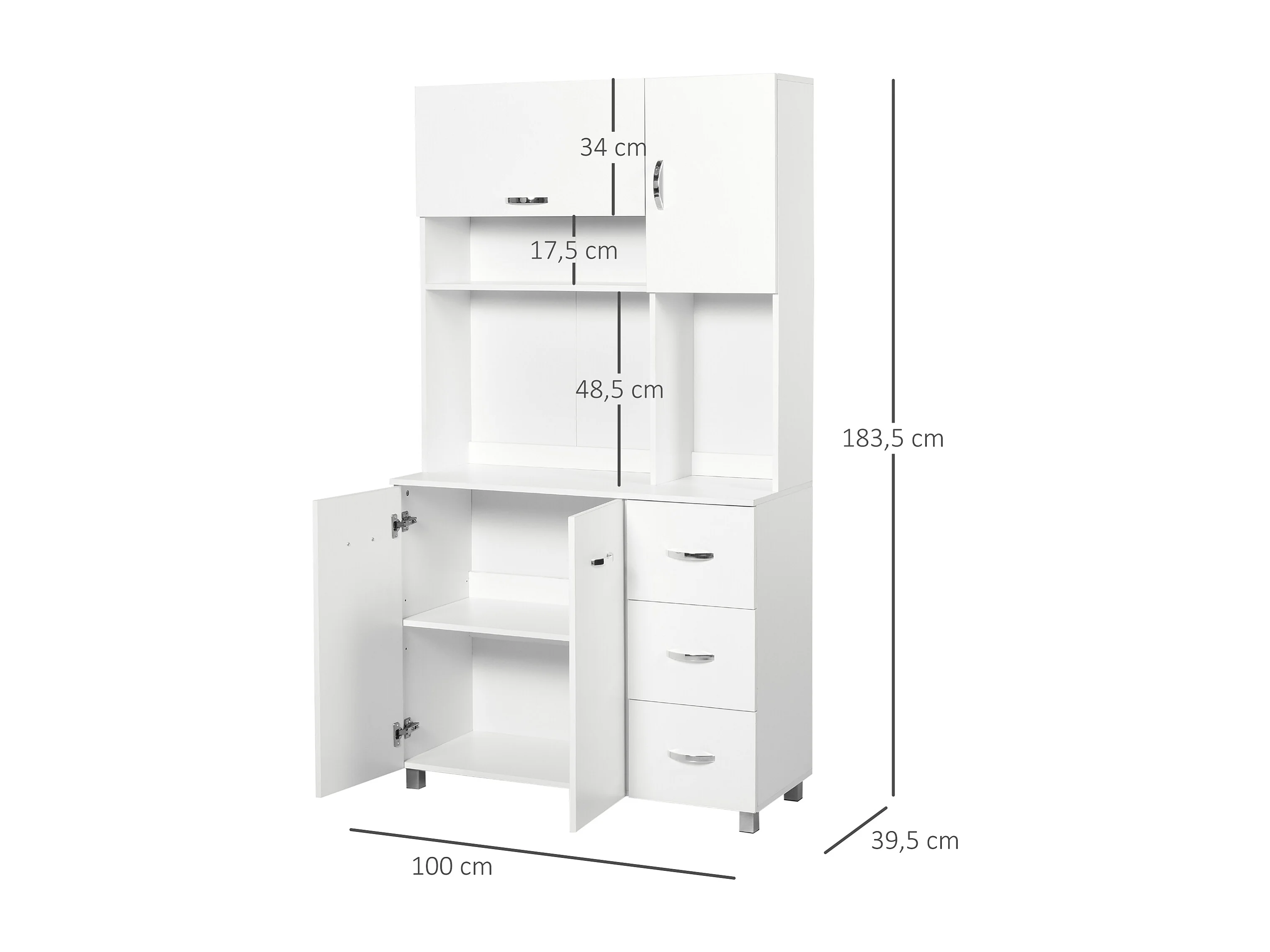 Armoire de cuisine haute – 100 x 39,5 x 183,5 cm – Blanche – Bois mélaminé, métal et plastique