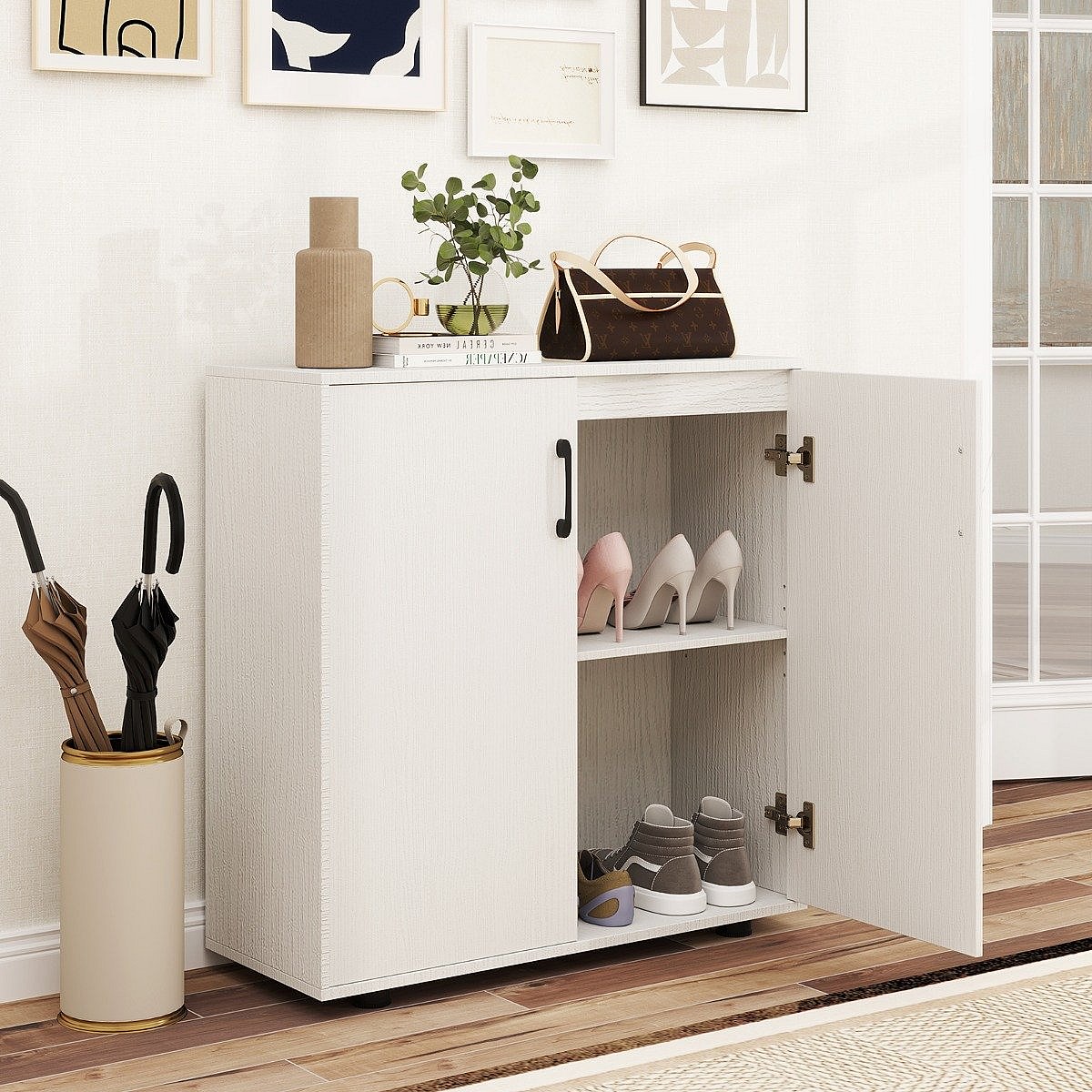 Armoire de Rangement à 2 Portes Meuble d'Accent Moderne avec Étagère Ajustable avec 2 Kits Anti-basculement Blanc