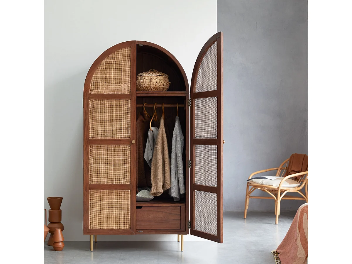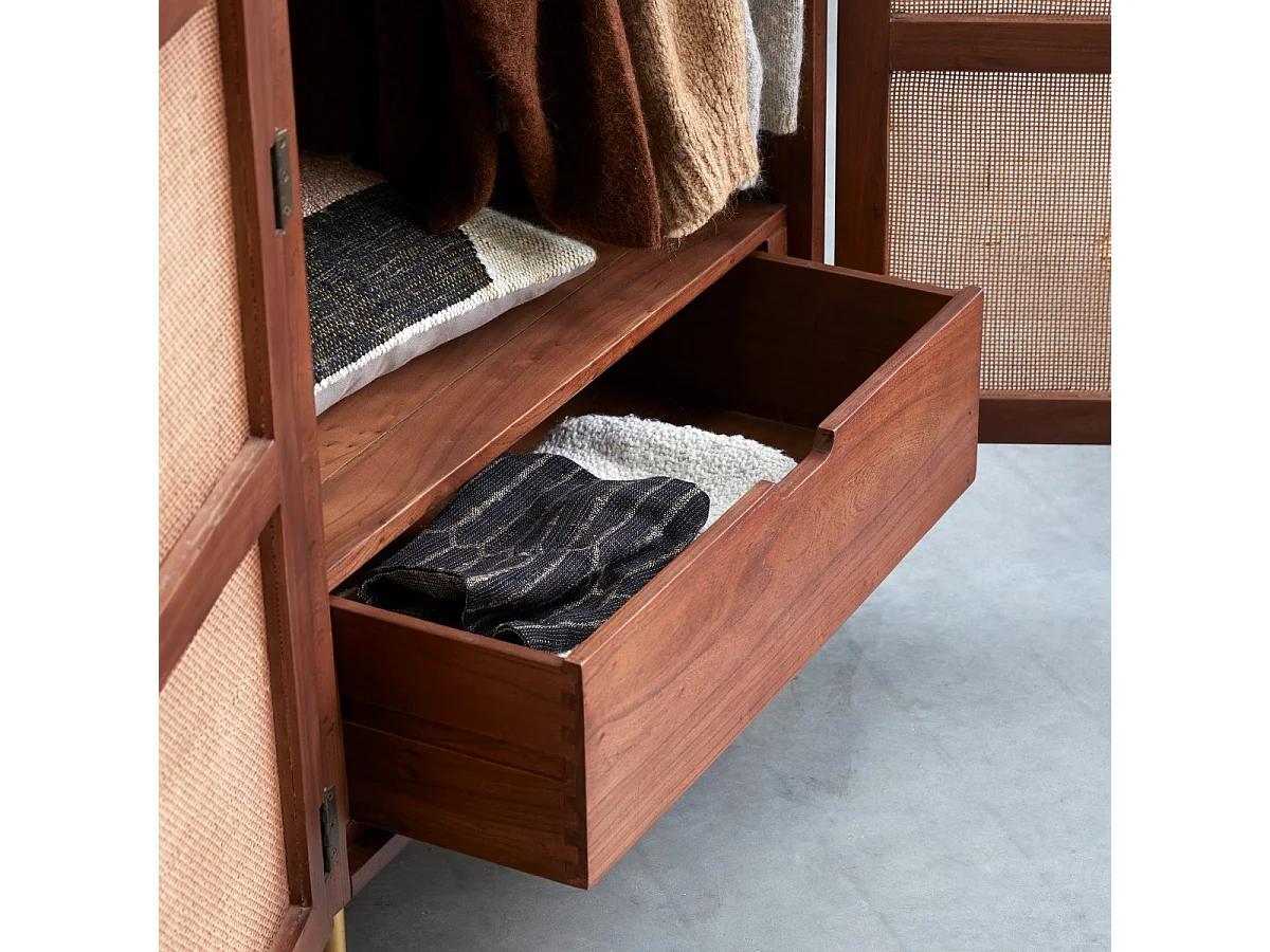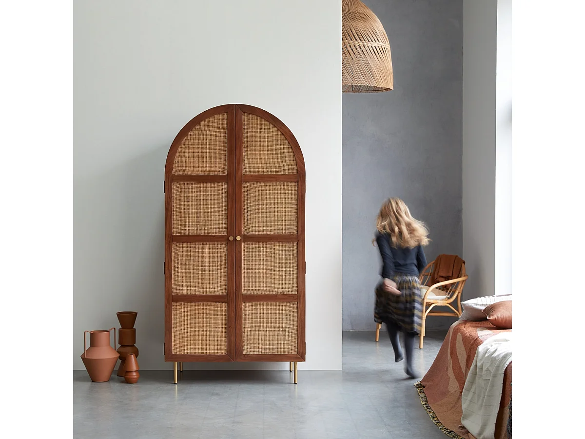 Armoire de rangement en bois d'orme et cannage Lisbeth