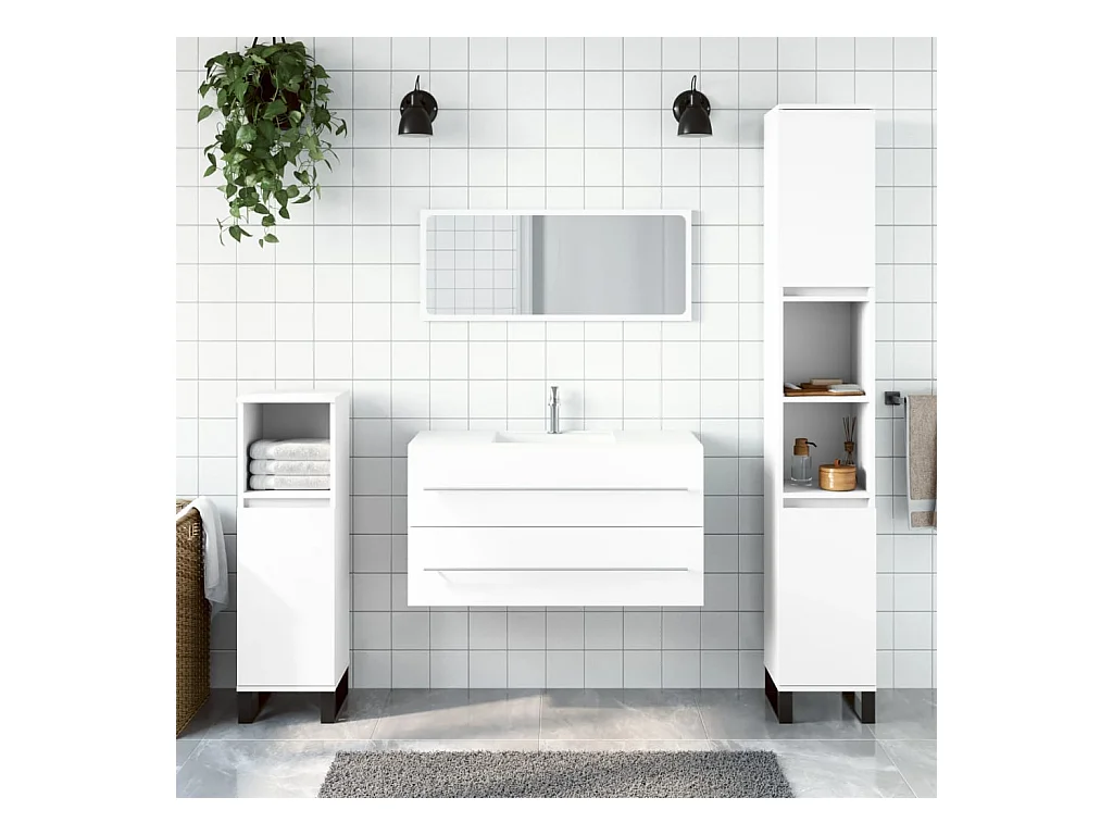 Armoire de bain avec miroir blanc brillant bois d'ingénierie