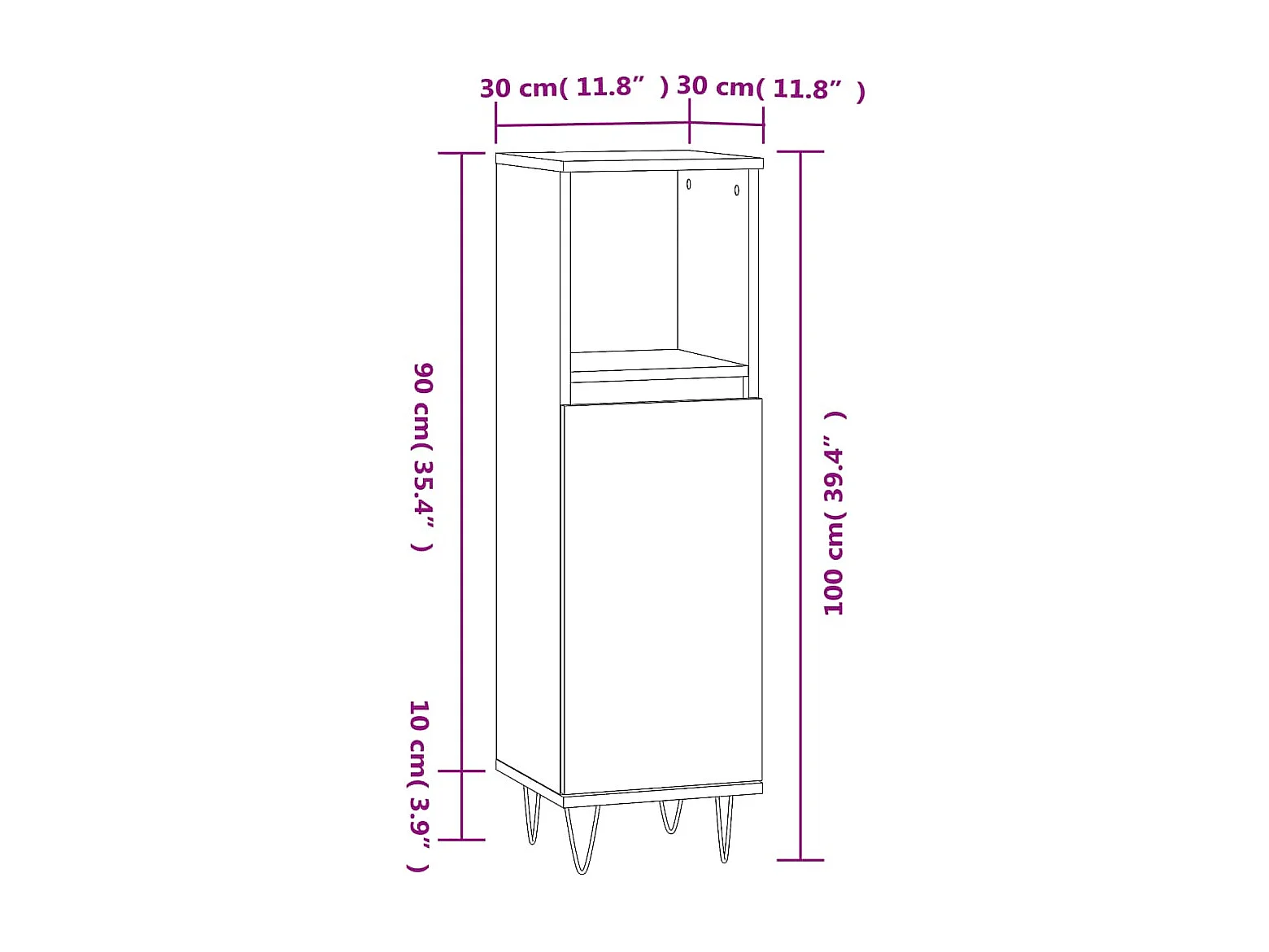 Armoire de salle de bain noir 30x30x100 cm bois d'ingénierie