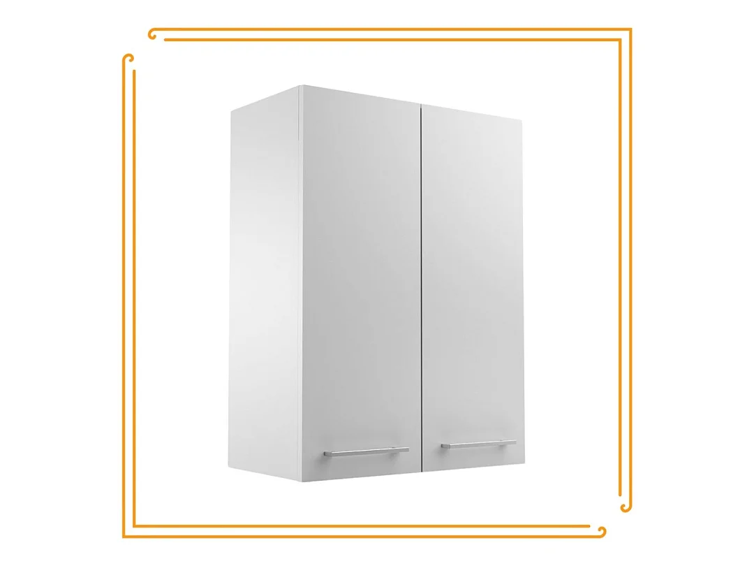 Armoire de salle de bain suspendue 60 cm au-dessus de l'évier avec étagères pour machine à laver blanc chromé