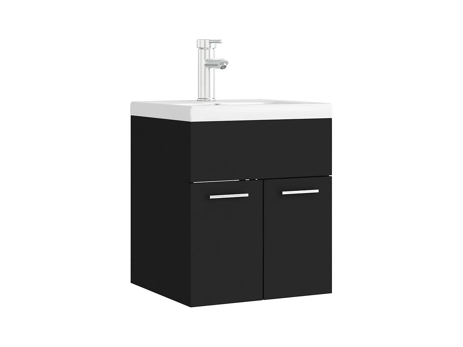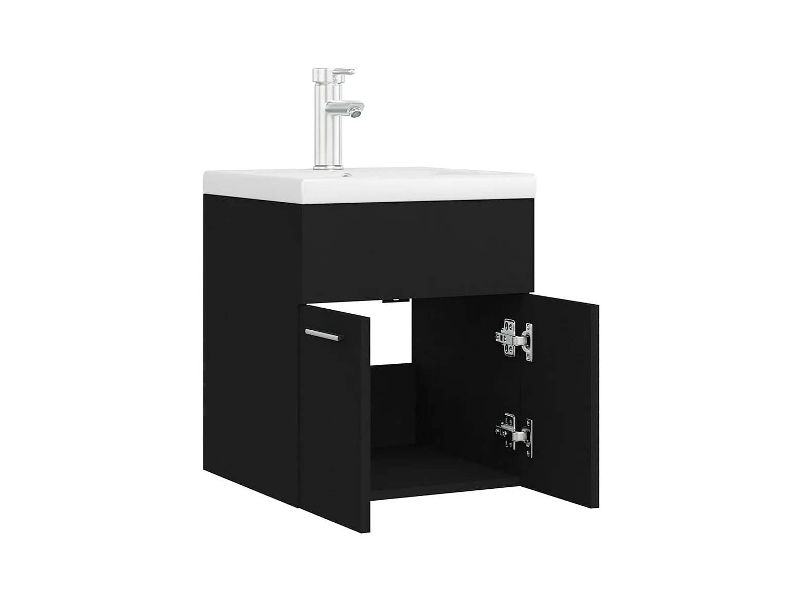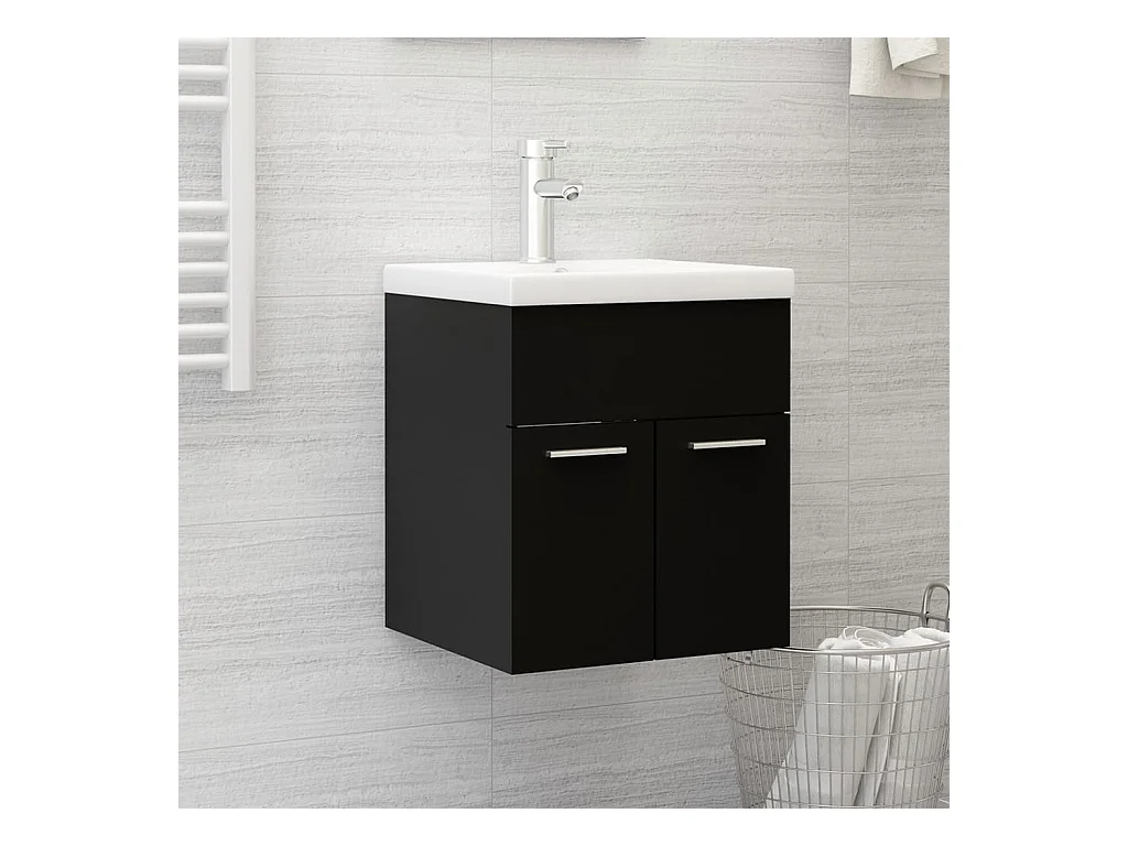 Armoire d'évier avec lavabo intégré noir bois d'ingénierie