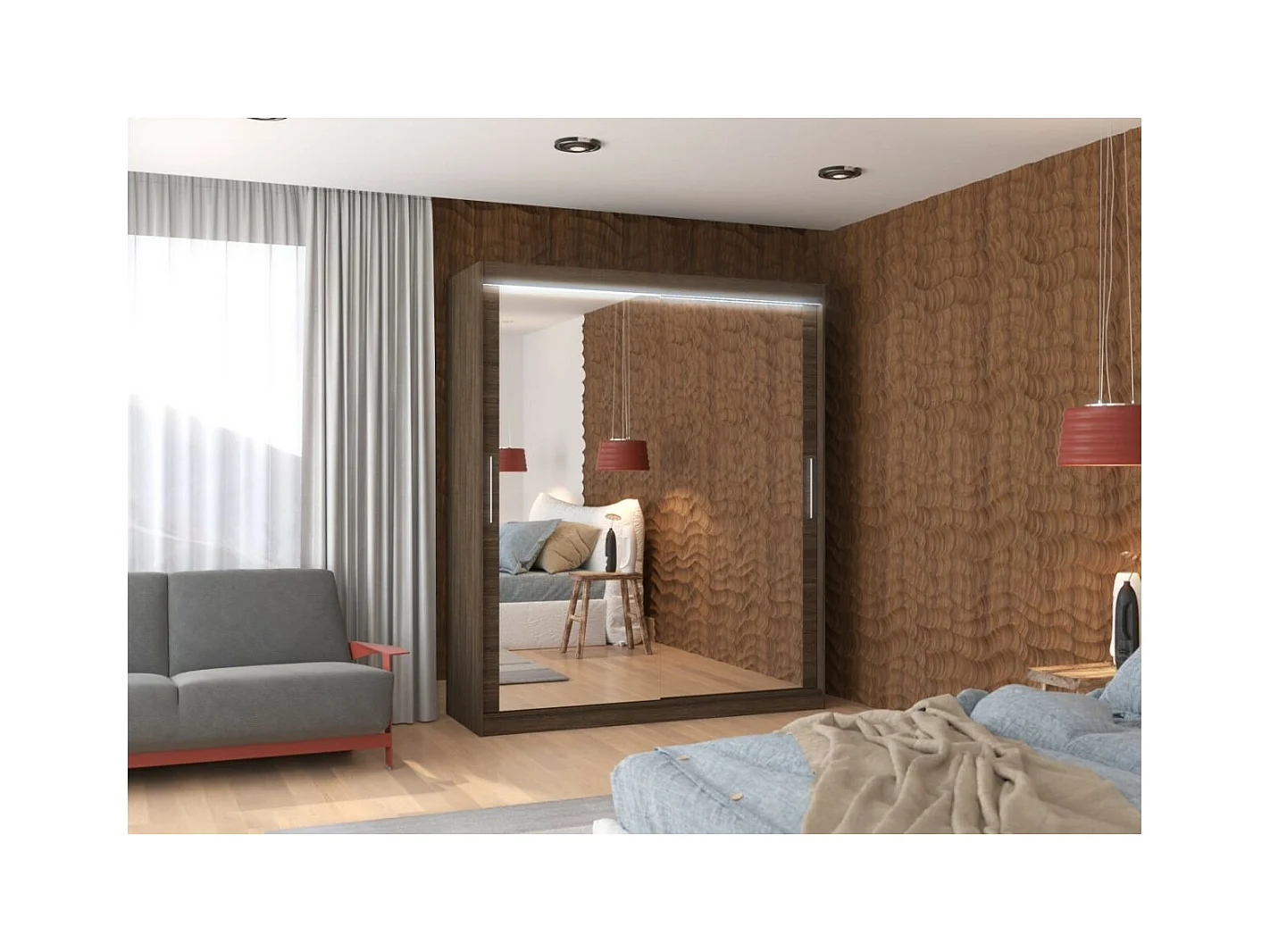 Armoire Taro Lux (180cm)/portes coulissantes/miroir/LED/Marron