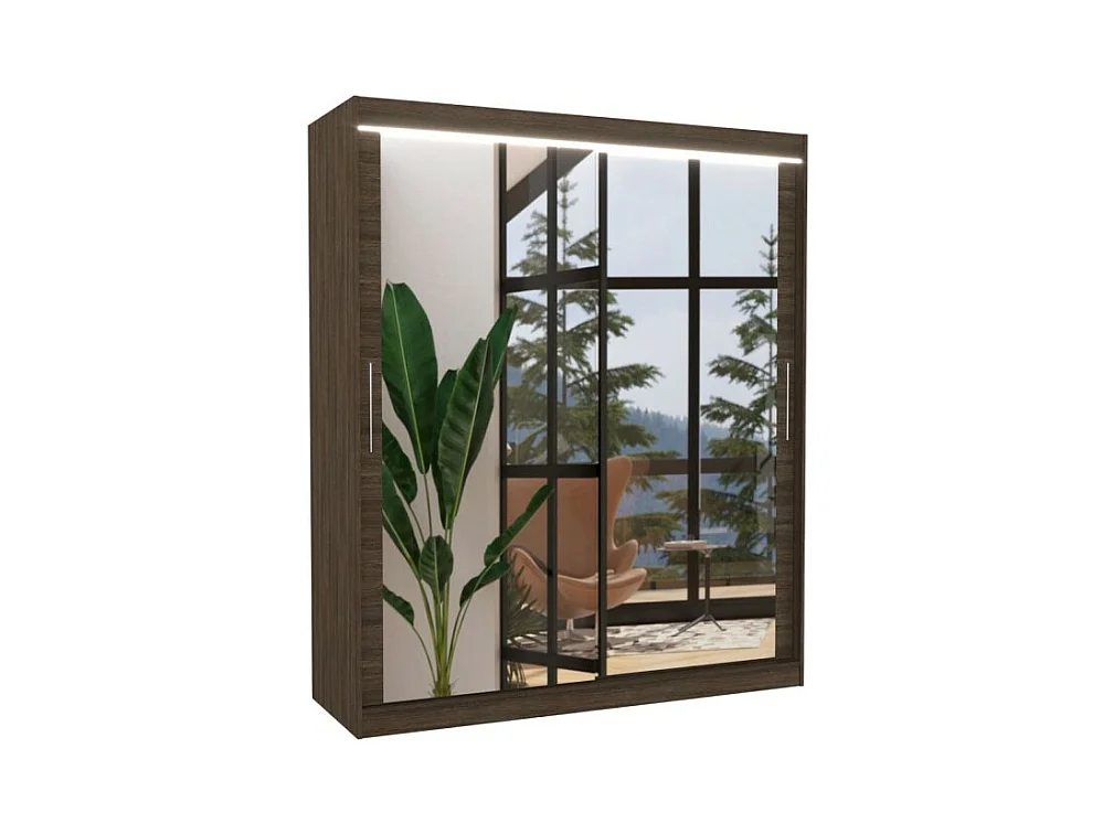 Armoire Melison Lux (180cm)/portes coulissantes/miroir/LED/Marron