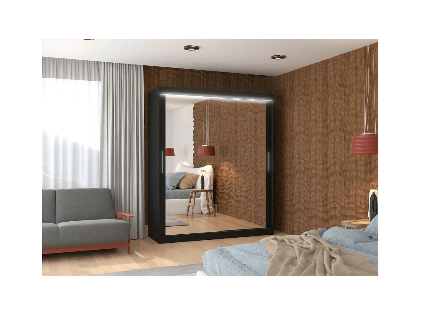 Armoire Taro Lux (180cm)/portes coulissantes/miroir/LED/Noir