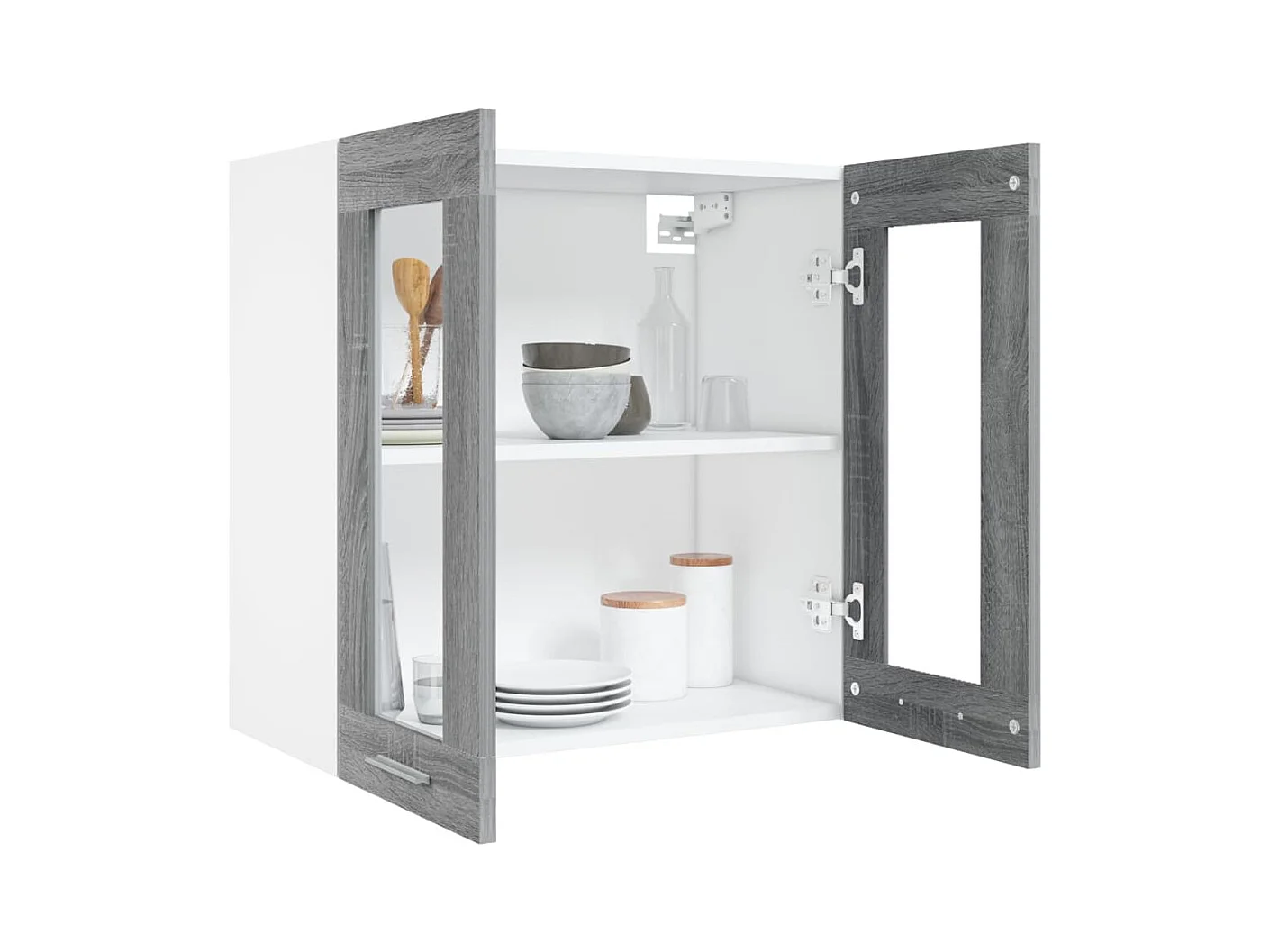 Armoire en verre suspendue Gris béton Bois d'ingénierie