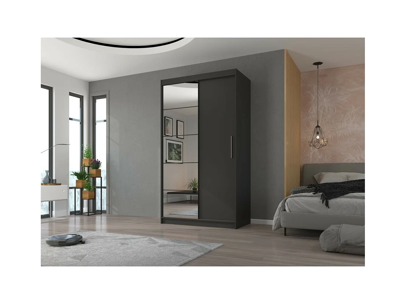 Armoire Etta (120cm)/portes coulissantes/miroir/Gris