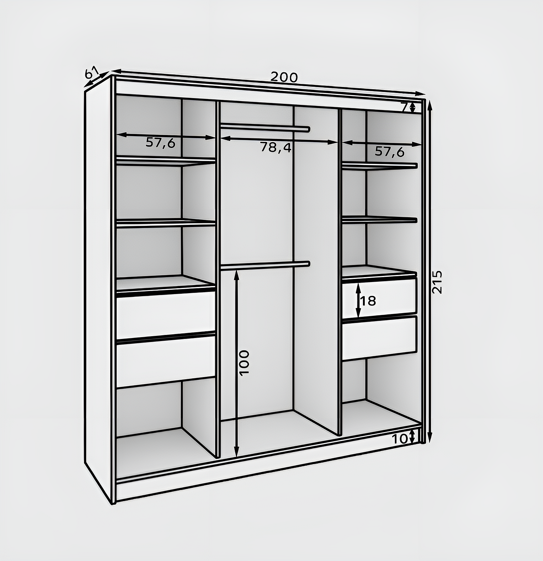 Armoire Ines (200 cm)/Portes coulissantes/Miroir et tiroirs/Noir&Marron