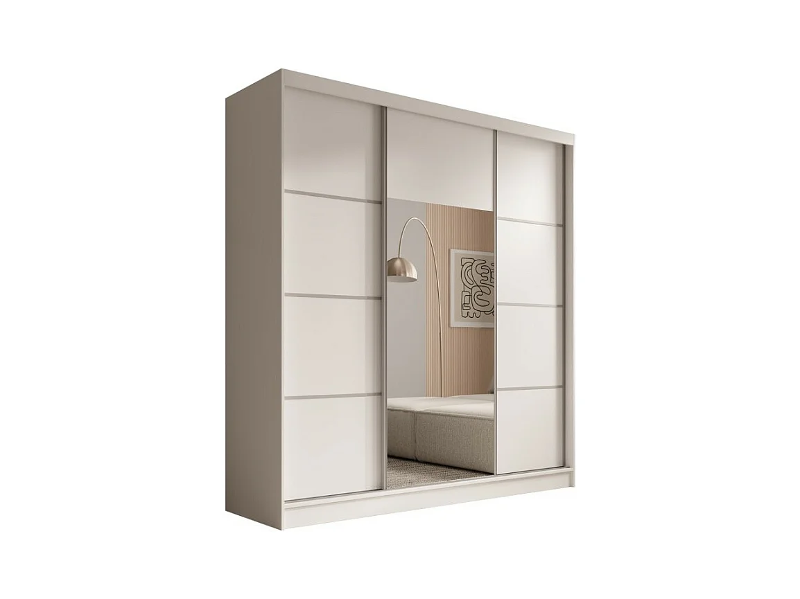 Armoire Thora (200cm)/Miroir/Portes coulissantes/Blanc