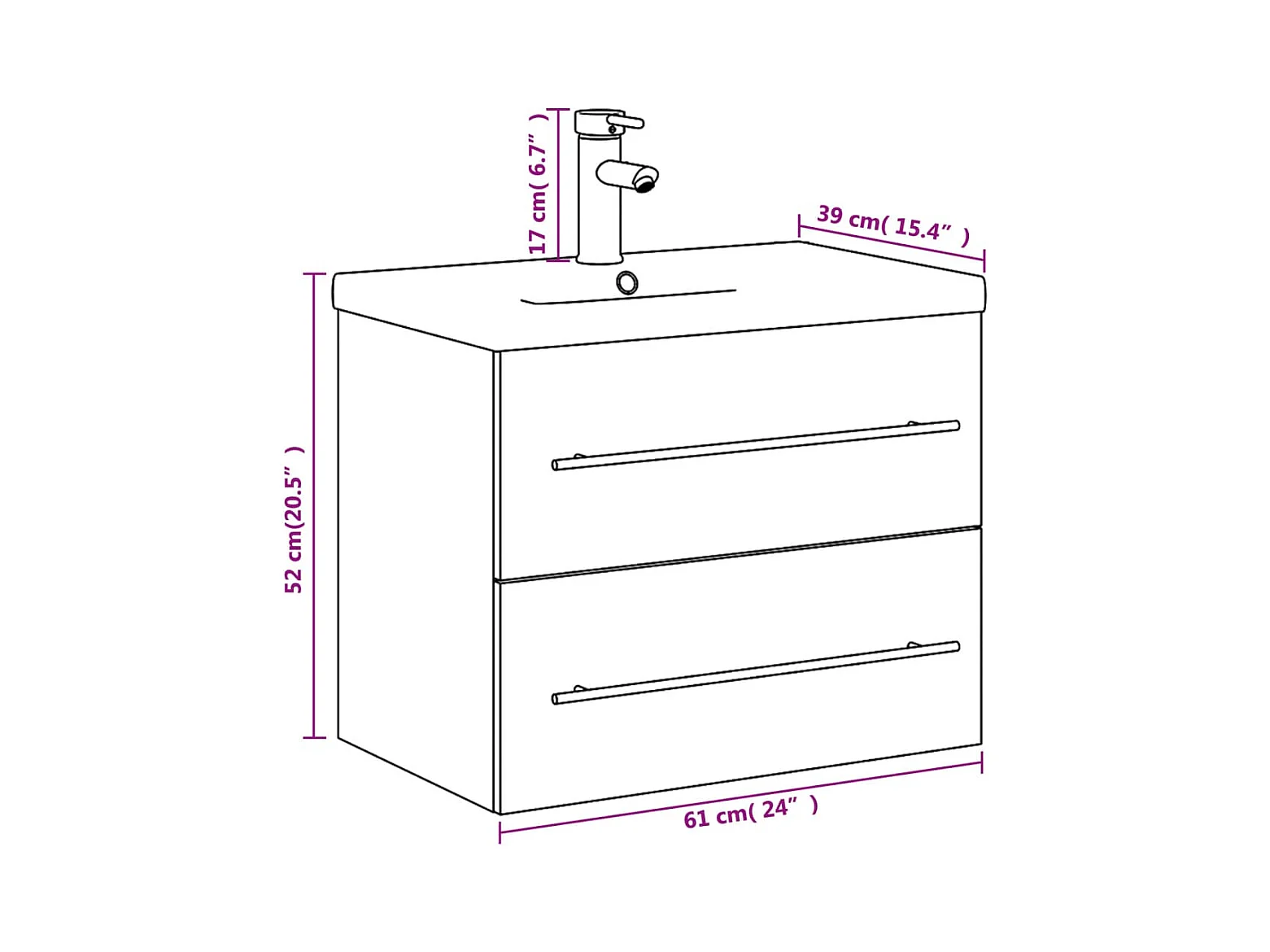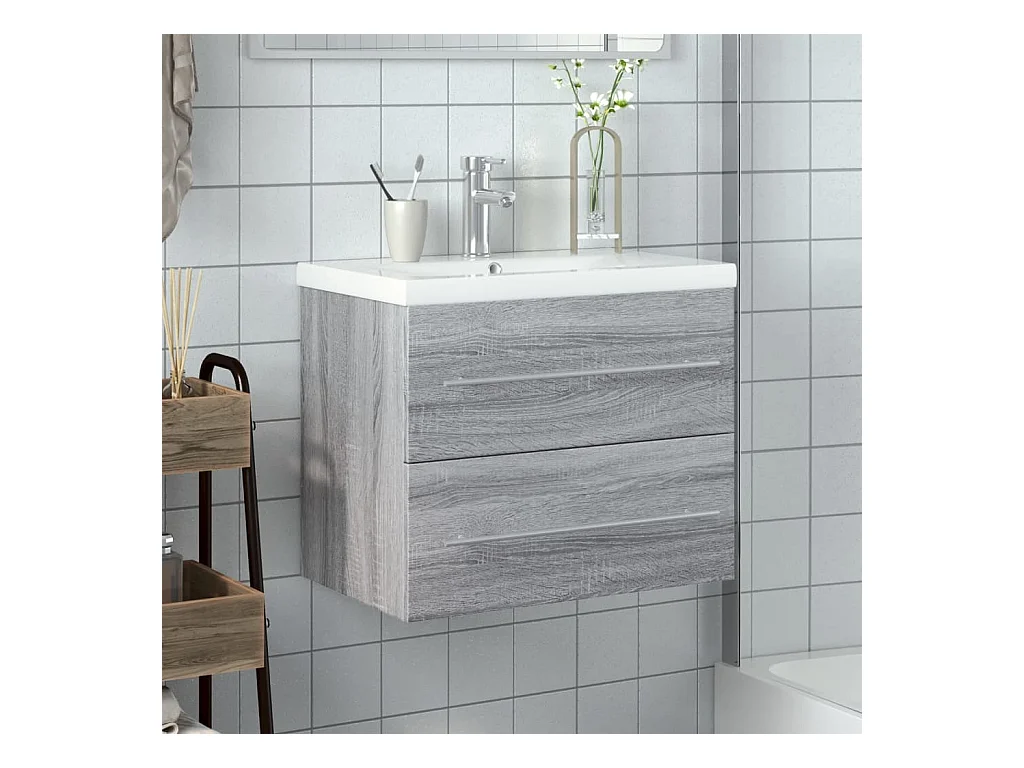 Armoire lavabo de salle de bain avec bassin intégré sonoma gris