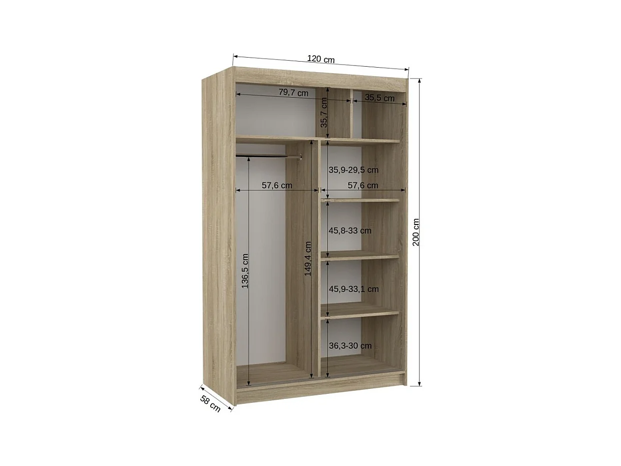 Armoire Alan (150 cm)/Portes coulissantes/Miroir et LED/Sonoma