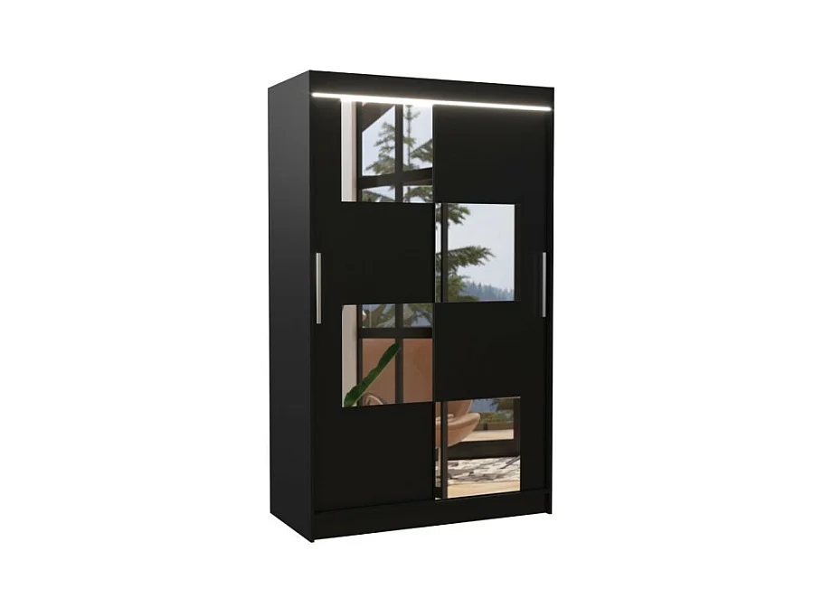 Armoire Lorano (120cm)/portes coulissantes/miroir/LED/Noir