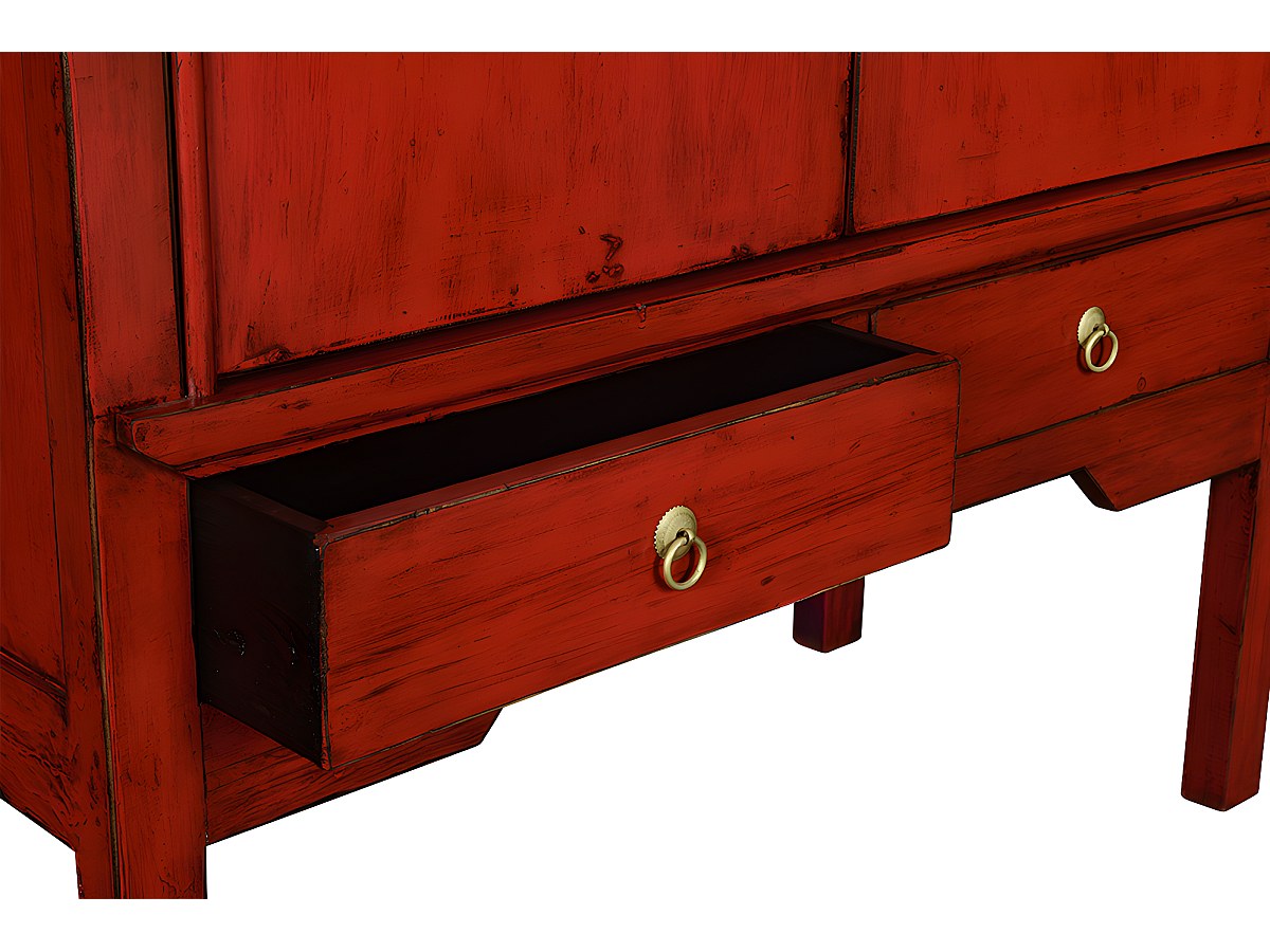 Armoire NANTONG - 2 portes & 2 tiroirs - L.105 cm - Bois de sapin - Rouge