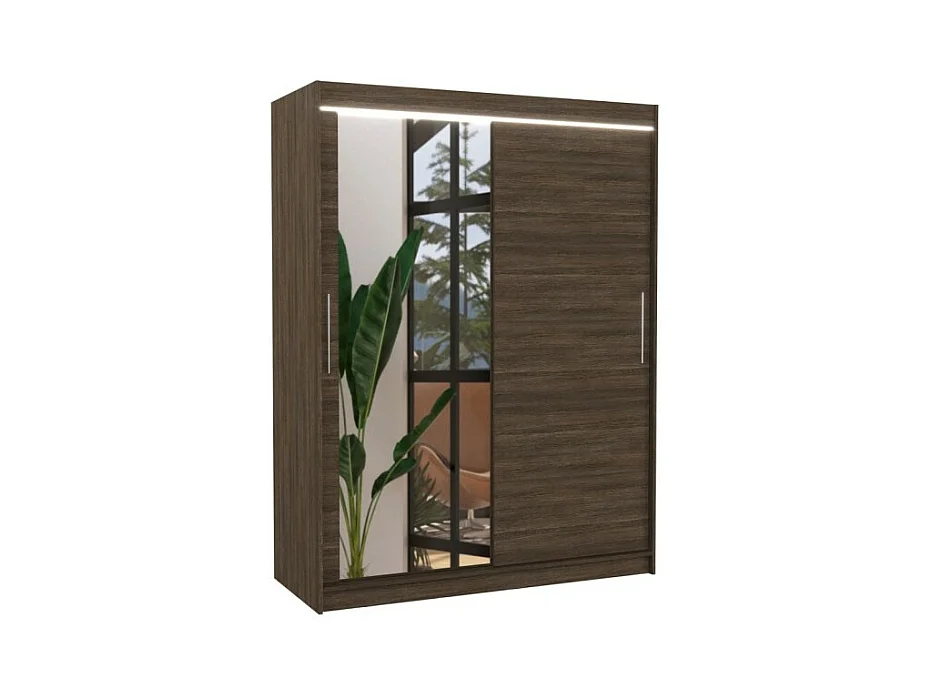 Armoire Nico (150cm)/portes coulissantes/miroir/LED/Marron