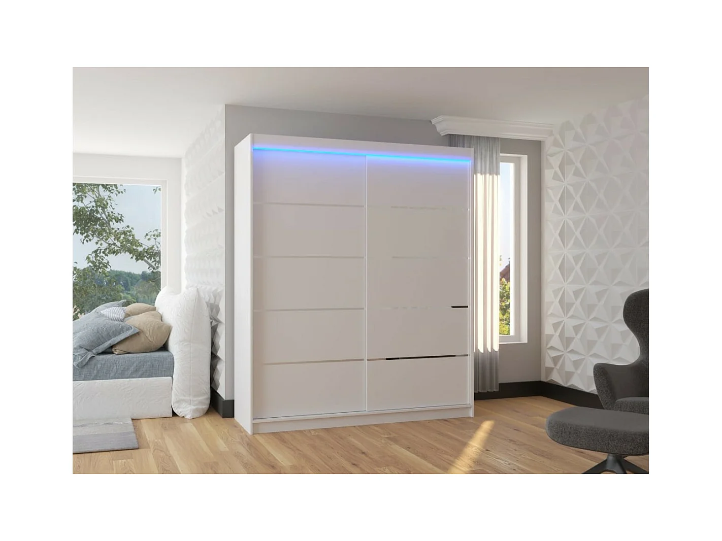 Armoire Liam (180cm)/Portes coulissantes/LED/Blanc