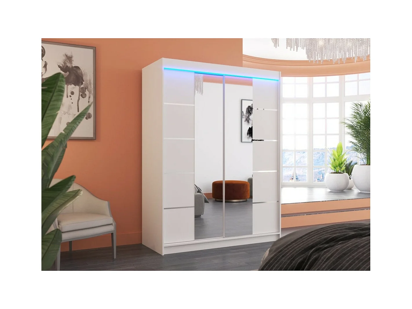 Armoire Swedy (150cm)/portes coulissantes/LED/miroir/Blanc