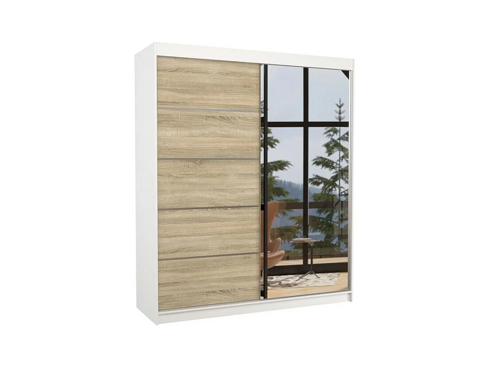 Armoire Taro (180cm)/portes coulissantes/miroir/Sonoma&Blanc