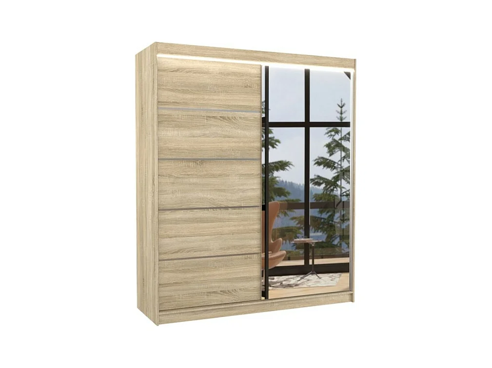 Armoire Lotte (180cm)/portes coulissantes/miroir/LED/Sonoma